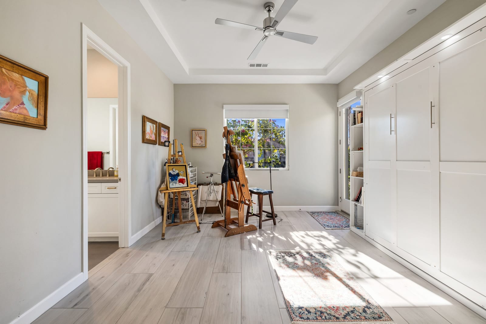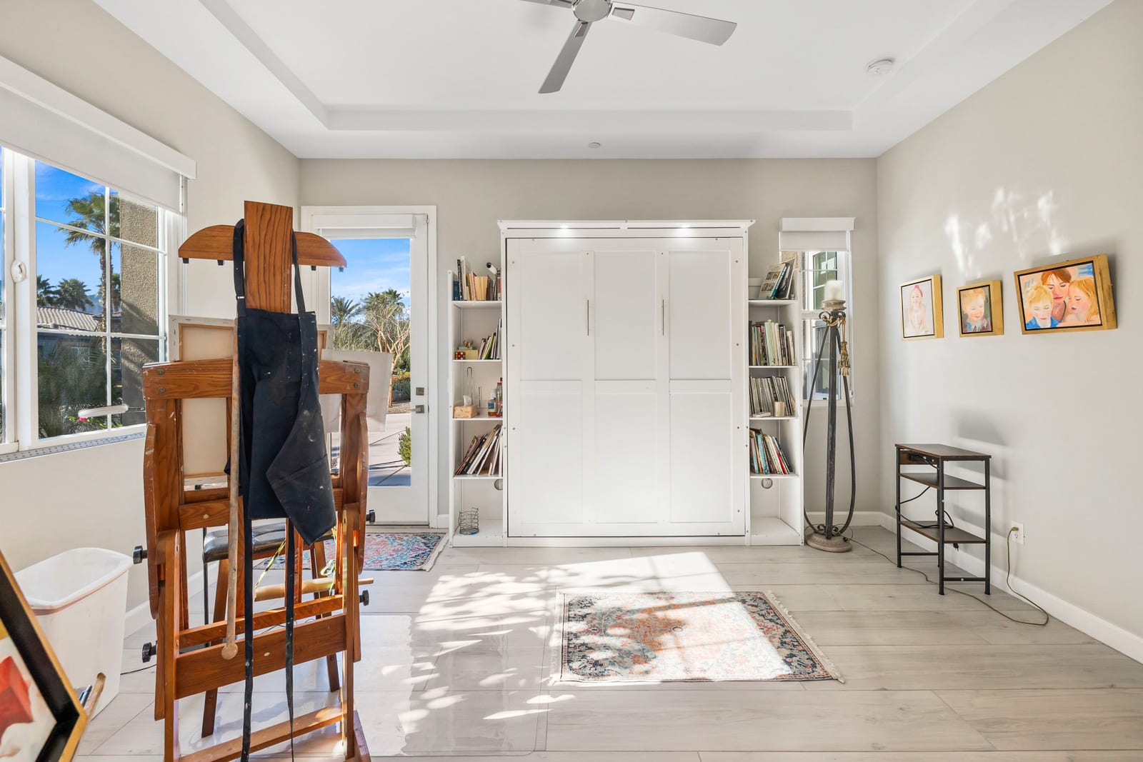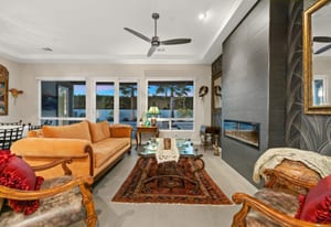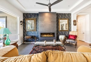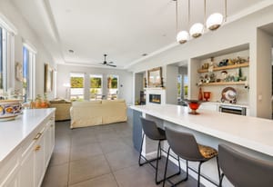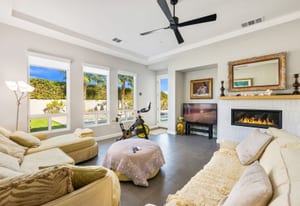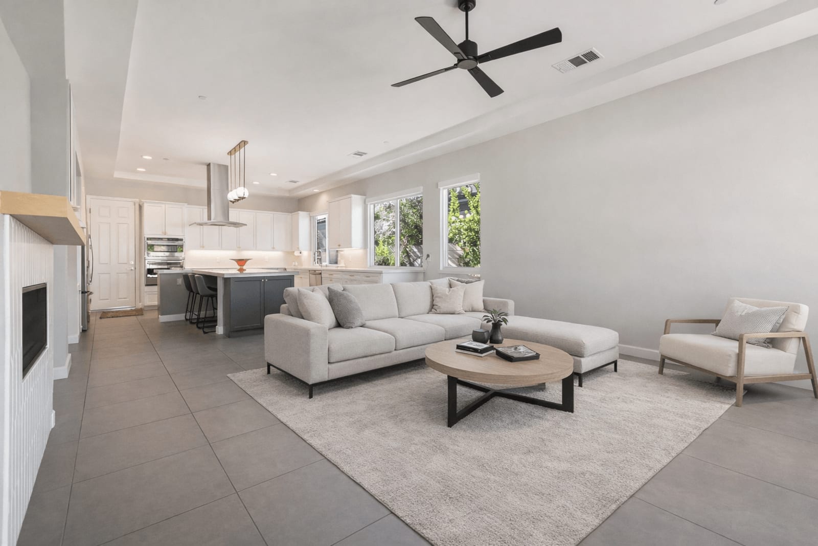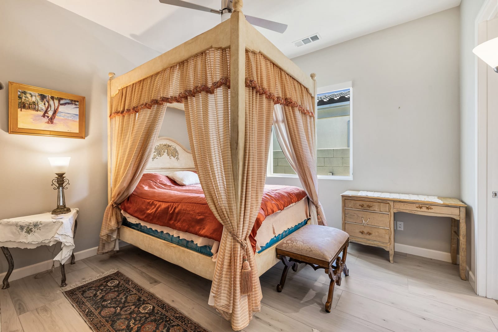 81890 Thoroughbred Trail | Rancho Santana | South La Quinta Situated within the sought-after Rancho Santana community, 81890 Thoroughbred Trail presents a compelling opportunity to own a newer-construction, contemporary home in one of La Quinta's most desirable residential settings. Completed in 2021, this later phase is especially prized for its transitional design aesthetic, contemporary features and appliances, wide and well-maintained streets, mature landscaping, and overall sense of space, distinguishing itself from earlier phases of the community. The residence spans 2,912 sq ft and offers 3 bedrooms and 4 bathrooms, featuring an open-concept layout designed for today's buyer and the desert lifestyle. Contemporary finishes, a seamless kitchen-to-living connection, and a spacious primary suite create a home that feels current, comfortable, and easy to live in. Each secondary bedroom is en suite, providing privacy and flexibility for family or guests, while the third bedroom offers its own private entrance, ideal for visitors or extended stays. The contrast between clean white kitchen amenities, large-format darker tile flooring, and the fireplace detail adds visual interest and broad décor appeal. Owned Solar is another Asset with underestimated utility and long-term value. Set on a generous 10,000+ sq ft lot, the spacious backyard offers ample room for relaxed desert poolside living and entertaining, while capturing beautiful westerly San Jacinto Mountain views. Rancho Santana residents enjoy community parks, walking paths, and gathering areas, further enhancing the neighborhood's appeal. The location is complemented by proximity to many of the desert's finest lifestyle and sporting destinations, including premier private golf clubs, the Indian Wells Tennis Garden, Desert International Horse Park, Thermal Club, Jacqueline Cochran Regional Airport, polo grounds, pickleball facilities, and the Coachella and Stagecoach music festival venues. Nearby Old Town La Quinta and the famed La Quinta Resort offer additional options for dining, shopping, and local exploration. Whether seeking a year-round residence or a seasonal retreat, this home and community appeal to a wide range of buyers. Opportunities to own in this newer phase of Rancho Santana are limited—this is one not to be missed. Select images include virtual staging to illustrate contemporary furnishings.
