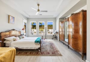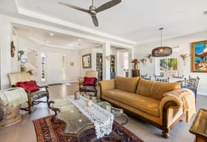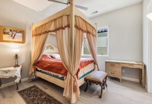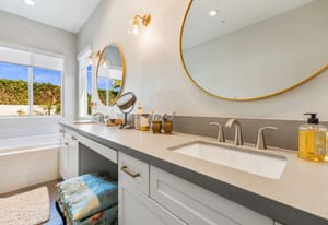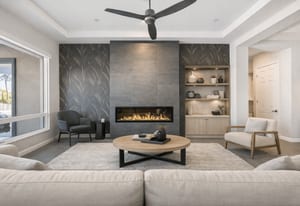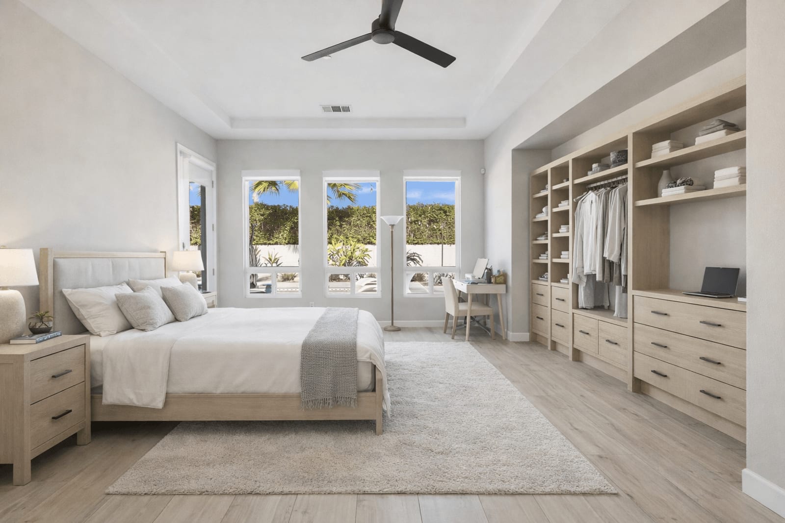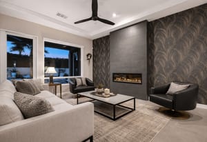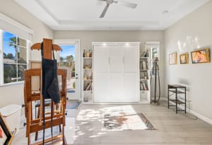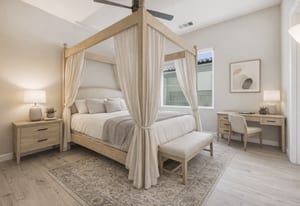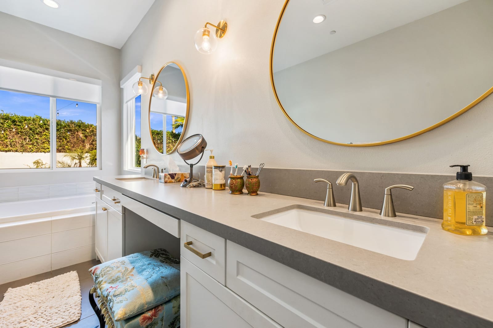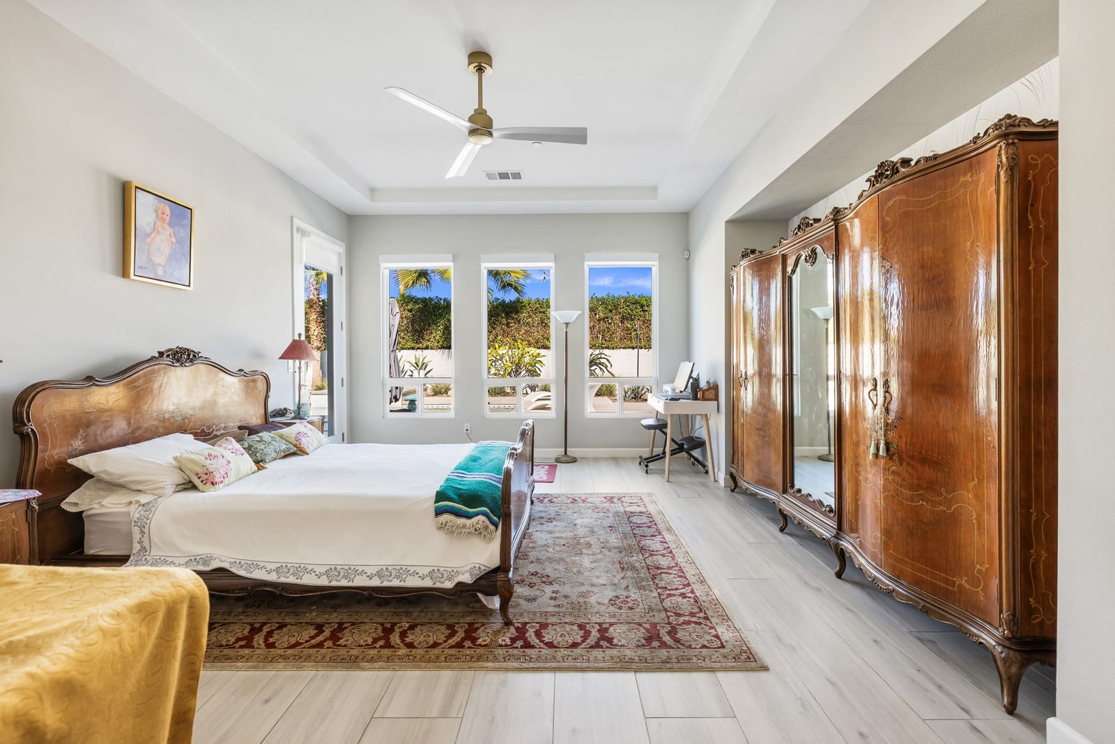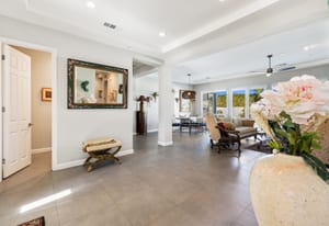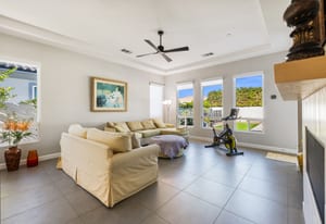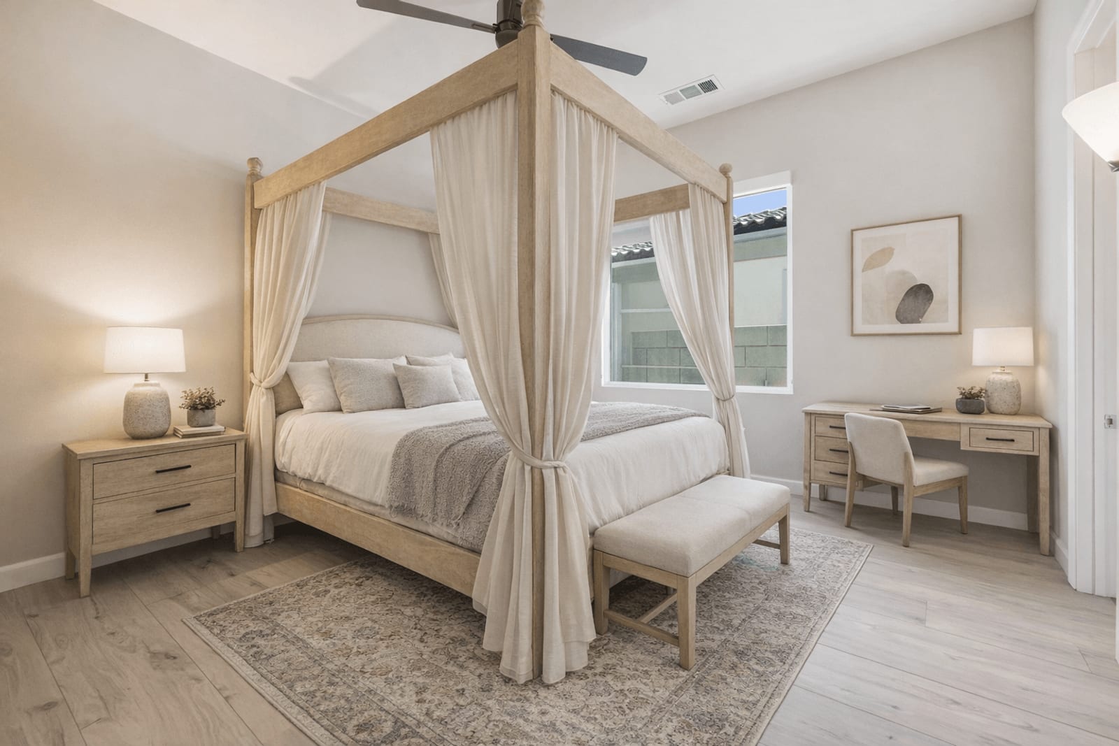 81890 Thoroughbred Trail | Rancho Santana | South La Quinta Situated within the sought-after Rancho Santana community, 81890 Thoroughbred Trail presents a compelling opportunity to own a newer-construction, contemporary home in one of La Quinta's most desirable residential settings. Completed in 2021, this later phase is especially prized for its transitional design aesthetic, contemporary features and appliances, wide and well-maintained streets, mature landscaping, and overall sense of space, distinguishing itself from earlier phases of the community. The residence spans 2,912 sq ft and offers 3 bedrooms and 4 bathrooms, featuring an open-concept layout designed for today's buyer and the desert lifestyle. Contemporary finishes, a seamless kitchen-to-living connection, and a spacious primary suite create a home that feels current, comfortable, and easy to live in. Each secondary bedroom is en suite, providing privacy and flexibility for family or guests, while the third bedroom offers its own private entrance, ideal for visitors or extended stays. The contrast between clean white kitchen amenities, large-format darker tile flooring, and the fireplace detail adds visual interest and broad décor appeal. Owned Solar is another Asset with underestimated utility and long-term value. Set on a generous 10,000+ sq ft lot, the spacious backyard offers ample room for relaxed desert poolside living and entertaining, while capturing beautiful westerly San Jacinto Mountain views. Rancho Santana residents enjoy community parks, walking paths, and gathering areas, further enhancing the neighborhood's appeal. The location is complemented by proximity to many of the desert's finest lifestyle and sporting destinations, including premier private golf clubs, the Indian Wells Tennis Garden, Desert International Horse Park, Thermal Club, Jacqueline Cochran Regional Airport, polo grounds, pickleball facilities, and the Coachella and Stagecoach music festival venues. Nearby Old Town La Quinta and the famed La Quinta Resort offer additional options for dining, shopping, and local exploration. Whether seeking a year-round residence or a seasonal retreat, this home and community appeal to a wide range of buyers. Opportunities to own in this newer phase of Rancho Santana are limited—this is one not to be missed. Select images include virtual staging to illustrate contemporary furnishings.