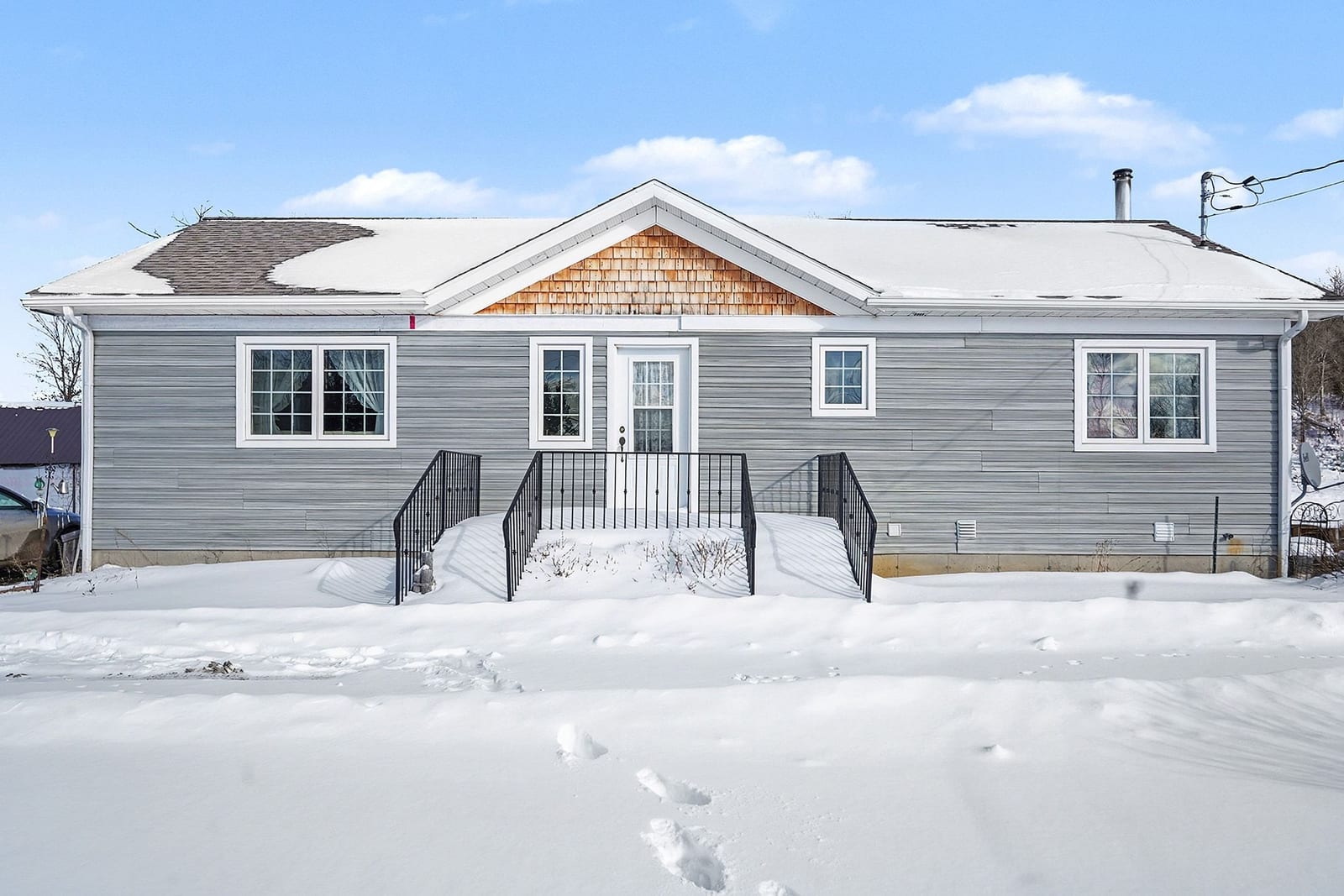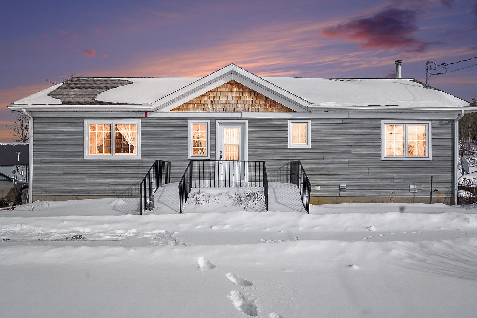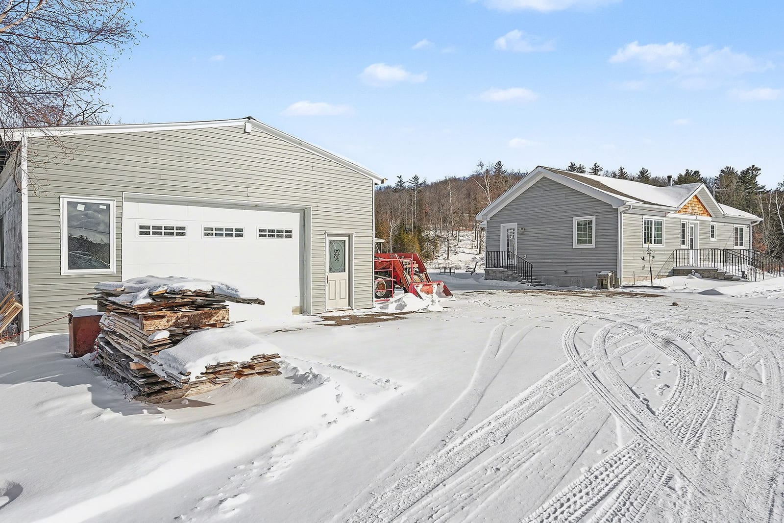 Remarkable 2+1 bedroom custom built bungalow, that is less than 9 years old. You enter the home from the inviting front porch. Once inside you are greeted by a conveniently laid out open concept living, dining & kitchen area. The kitchen has beautiful cabinetry and a well appointed island for additional seating & storage. Gleaming hardwood floors run through out most of the main level. The dinning room has a sliding door to a generous great room with vaulted ceiling. The great room is in the process of being completed. Laundry is located on this level as well and is in the mudroom with side door entrance. Perfect for coming in from the handy man's 38' x 25' detached dream garage. From the living room you head down the hallway to the well appointed 4 pc bath as well the 2nd bedroom and relaxing master bedroom. The lower level is home to the family room with cozy woodstove and walkout to the side yard with paved patio. Next to the family room is the utility room. There is also an additional 4 pc bath on this level that will be completed. Adjacent to the bathroom is an area that could be used as a games area or play area. Across the hall is the room that could be utilized as a 3rd bedroom with some minor adjustments. Then there is the home office and finally a good sized storage room. A 10' x 20' cedar deck is to be possibly constructed off the great room. With just over 3 acres of property there is plenty of space for playing and exploring. There is lots of...