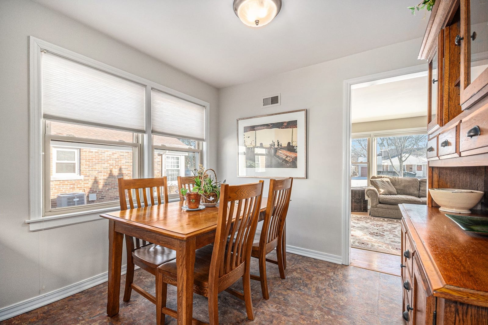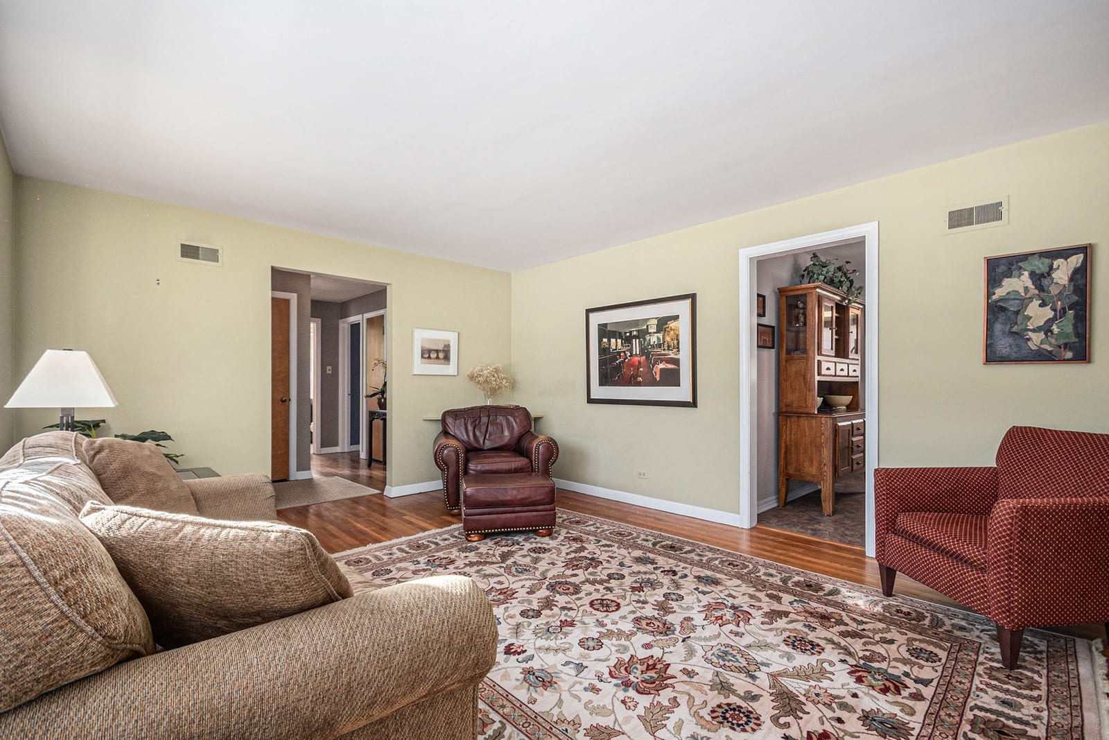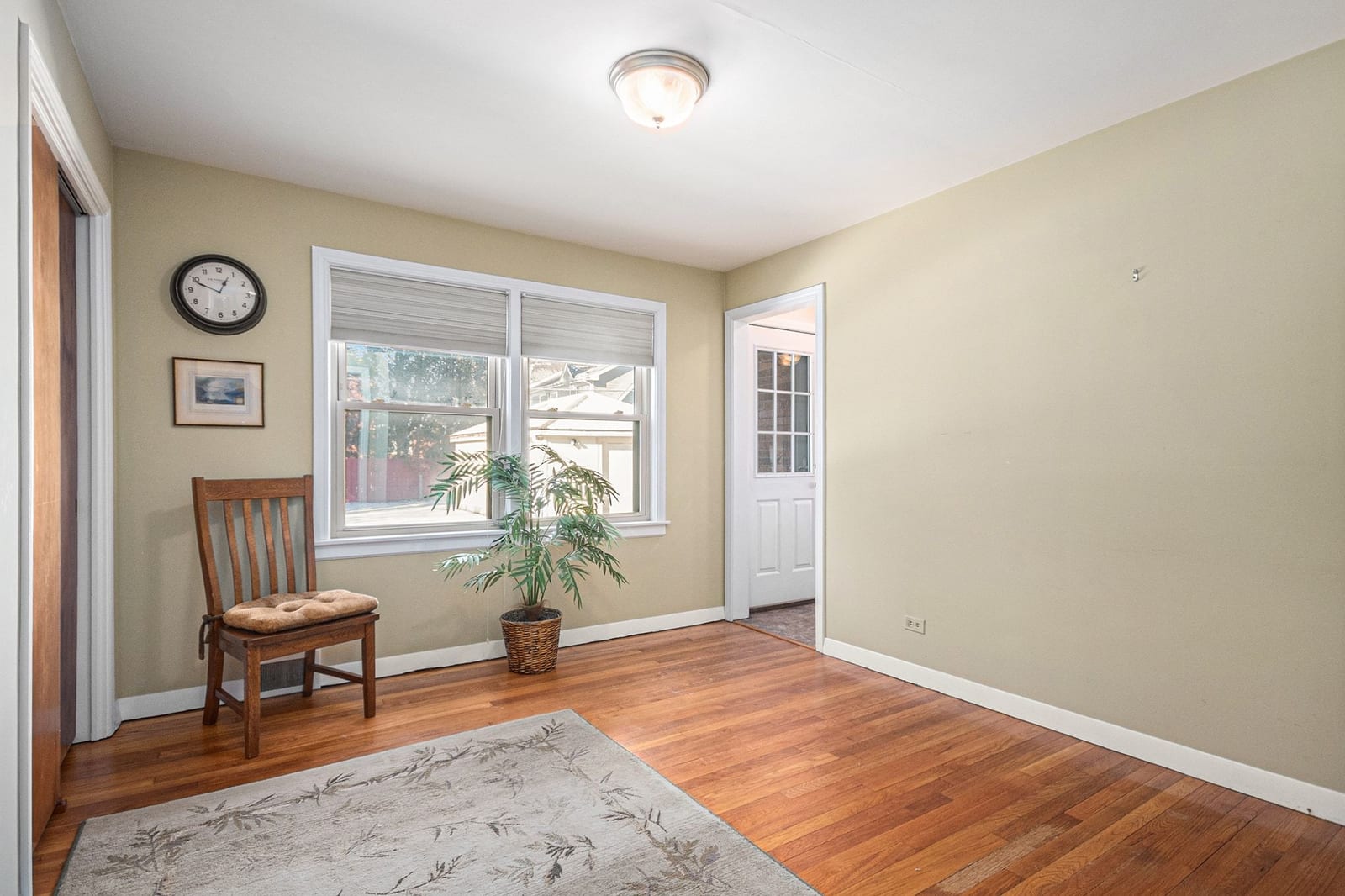 Beautifully maintained and lovingly cared for by the same family since it was built, this classic ranch offers timeless charm with thoughtful updates throughout. Refinished hardwood floors span the main level, complemented by white trim and abundant natural light from the large front bay window. The inviting living room features built-in shelving flanking the fireplace, creating a warm and welcoming focal point. The home offers three generously sized bedrooms and a full bath. One bedroom currently has doors removed, allowing for flexible use as a den, office, or easily restored bedroom. The kitchen was bumped out to the rear of the home, providing additional eating space and a functional layout ideal for everyday living. The finished basement is a true nod to the home's 1950s character, complete with classic paneling and a charming nook perfect for a dry bar or entertaining area. Situated on a wide lot, this solid all-brick home features a deep backyard with plenty of room to enjoy today or expand tomorrow, plus a detached 1.5-car garage. Ideally located in the sought-after Pioneer Park neighborhood, just a short walk to award-winning grade schools, parks, and all that in-town Arlington Heights has to offer-restaurants, shops, and the Metra express train to Chicago. A rare opportunity to own a home that has been cherished and meticulously maintained for generations.