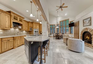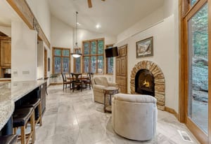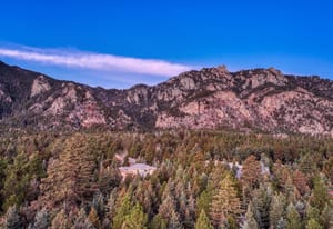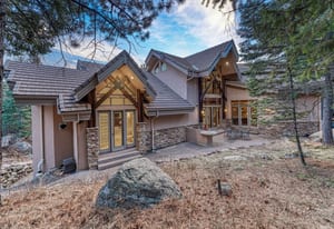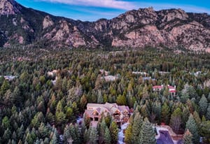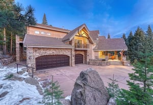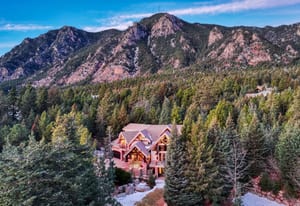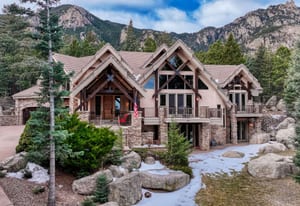 Set on a private 1.26 acre homesite in the prestigious Broadmoor Resort Community, this 5 bedroom architectural masterpiece by award winning architect David A. Langley reflects the timeless character of Colorado’s iconic alpine retreats. Surrounded by pines, boulders, and wildlife, the property provides tranquility while remaining close to the Broadmoor Hotel, nearby country clubs, shopping, and dining. Located within Cheyenne Mountain School District 12 with 24 hour manned security, the community offers privacy and peace of mind. Arched and beamed ceilings, rich wood finishes, and a dramatic floor to ceiling stone fireplace define the two story great room. Expansive windows capture mountain, treetop, and city views, transitioning from sunlit horizons to the glow of sparkling city lights after sunset. The gourmet kitchen features distressed cabinetry, slab granite counters, limestone floors, Viking appliances, dual ovens, a warming drawer, and a butler’s pantry designed for entertaining. The primary suite showcases beamed ceilings, a private balcony, a generous walk in closet, and a spa inspired bath with soaking tub and dual vanities. Upstairs, two additional bedrooms each offer ensuite baths while a loft provides an open, light filled space ideal for a home office or study with views. The walkout lower level is designed for relaxed entertaining, complete with built in bookshelves, a movie viewing space, wet bar, exercise area, wine storage, sauna, and two ensuite bedrooms ideal for guests or extended family. Multiple decks and patios invite year round outdoor living with sweeping views and exceptional privacy. Peaceful yet perfectly connected, the home offers comfort and effortless living for full time residency or seasonal enjoyment. Designed for gathering yet comfortable for quiet living, this contemporary mountain sanctuary is ideal for hosting family and friends while embracing the relaxed elegance of the Broadmoor lifestyle.