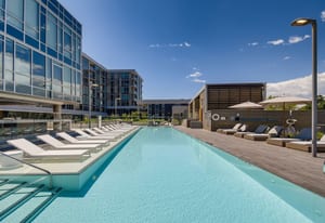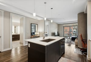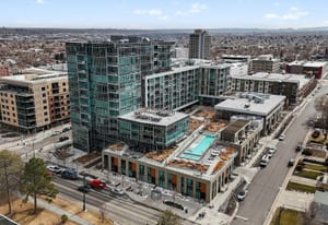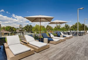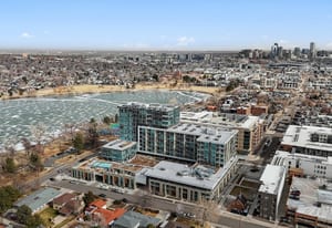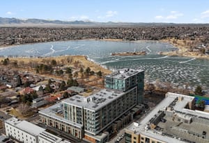 Nestled in Denver's vibrant Sloan's Lake neighborhood, this refined 1-bedroom, 1-bath unit at Lakehouse offers 869 square feet of contemporary elegance—and is priced at the best value per square foot in the building! Dark cabinetry adds a sophisticated contrast in the chef-inspired kitchen, complemented by premium finishes and ample storage. The open living area has plenty of room to stretch out, as well as providing convenient work-from-home and/or dining space. The open layout flows seamlessly to a private south-facing balcony, overlooking the serene lawn and plaza area - with the mountains in the distance - for peaceful mornings or evening unwinds. The large primary bedroom enjoys a beautiful en-suite bath featuring dual vanities, and a convenient in-unit laundry and walk in closet area completes the unit. This amazing home also includes a secured garage parking space and private storage locker. As Colorado's only WELL-certified community, Lakehouse promotes wellness with resort-style amenities: a 70-foot lap pool, year-round hot tub, state-of-the-art fitness center, yoga studio, sauna, resident lounge, pet spa, and a 26,000-square-foot outdoor terrace with urban farm and grilling areas. 24/7 concierge and security services, on-site dining options and more enhance daily convenience and create the ideal urban lifestyle. Just steps from Sloan's Lake trails, dining, and breweries, with easy access to downtown Denver (5 miles) and the mountains. Ideal for those seeking a balanced, connected lifestyle; all at a great value!