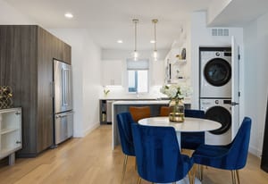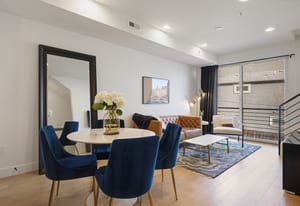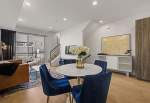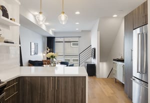 Set in the heart of Jefferson Park, this modern 2 bedroom | 3 bathroom townhome delivers the ideal blend of city energy and smart design. The ground level provides a thoughtfully planned foyer space, additional access from the attached one-car garage, and a convenient powder bathroom. One level up, the open-concept main level connects the kitchen, dining, and living spaces, creating an easy flow for everyday living, hosting friends, or laid back nights at home. The kitchen is sleek and functional, featuring two-tone soft-close cabinetry, quartz countertops, ample cabinet and counter space, and peninsula seating, perfect for morning coffee, casual meals, or pre-dinner cocktails. A large sliding glass door opens to a Juliet balcony, bringing in abundant natural light and giving the space an airy, urban feel. Located on the third level is the beautifully bright primary suite, complete with walk-in closet and en suite bathroom with double vanity and walk-in glass shower. A second bedroom, ideal for guests or a home office, and a second full bathroom round out this level. At the top of the home, the showstopping private rooftop deck provides your personal outdoor escape overlooking downtown Denver, ready for grilling, entertaining, or unwinding with stunning skyline views and city lights. Added features include washer and dryer, premium engineered hardwood floors, custom lighting upgrades, additional garage storage space, and smart home features. No HOA (party wall agreement) keeps ownership simple, while the unbeatable location puts you just minutes from downtown, with quick access to I-25, steps from the meticulously maintained 5-acre Jefferson Park, and surrounded by neighborhood retail, restaurants, and coffee spots. With thoughtful design and modern finishes throughout, this home is the perfect landing spot for your active, connected, and effortlessly urban lifestyle.