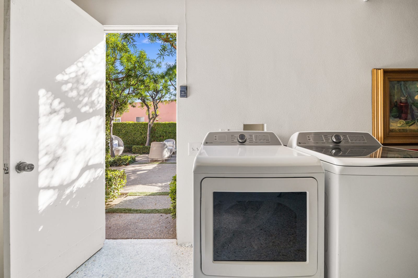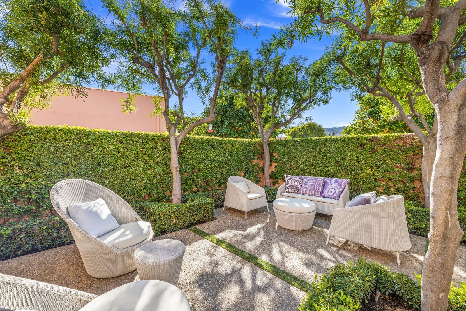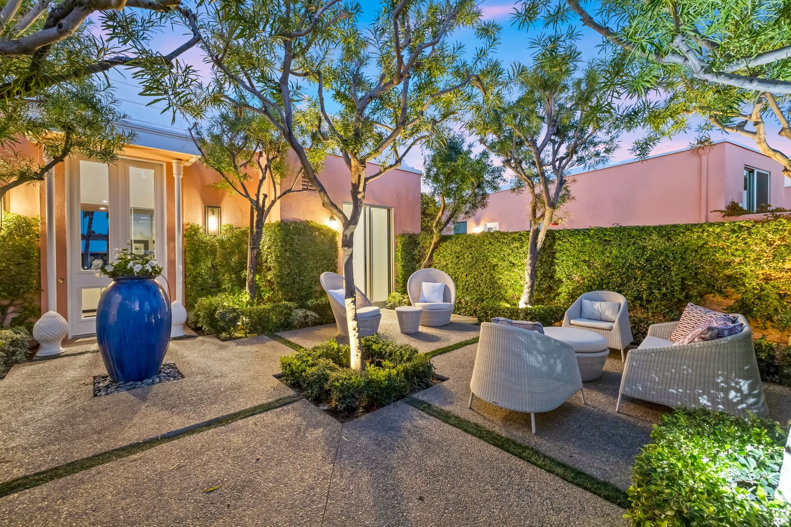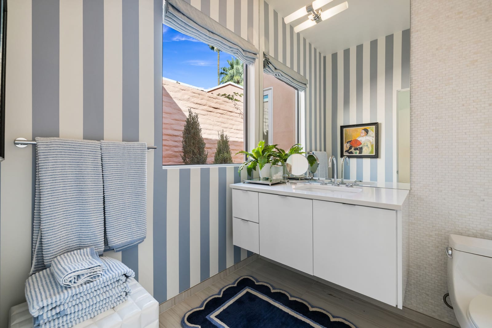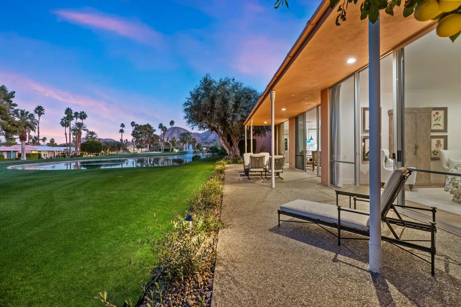 Situated in prestigious Marrakesh Country Club, this John Elgin Woolf-designed Hollywood Regency villa is a masterful blend of modern and classic luxury. Enter through wrought-iron gates into the expansive south-facing courtyard, beautifully landscaped in timeless style, and step inside through the iconic Marrakesh Pullman entry doors. This two-bedroom, three-bathroom, 1,910 sq. ft. B Plan has been thoughtfully reimagined with exceptional attention to detail, seamlessly combining bright, modern aesthetics with timeless sophistication.