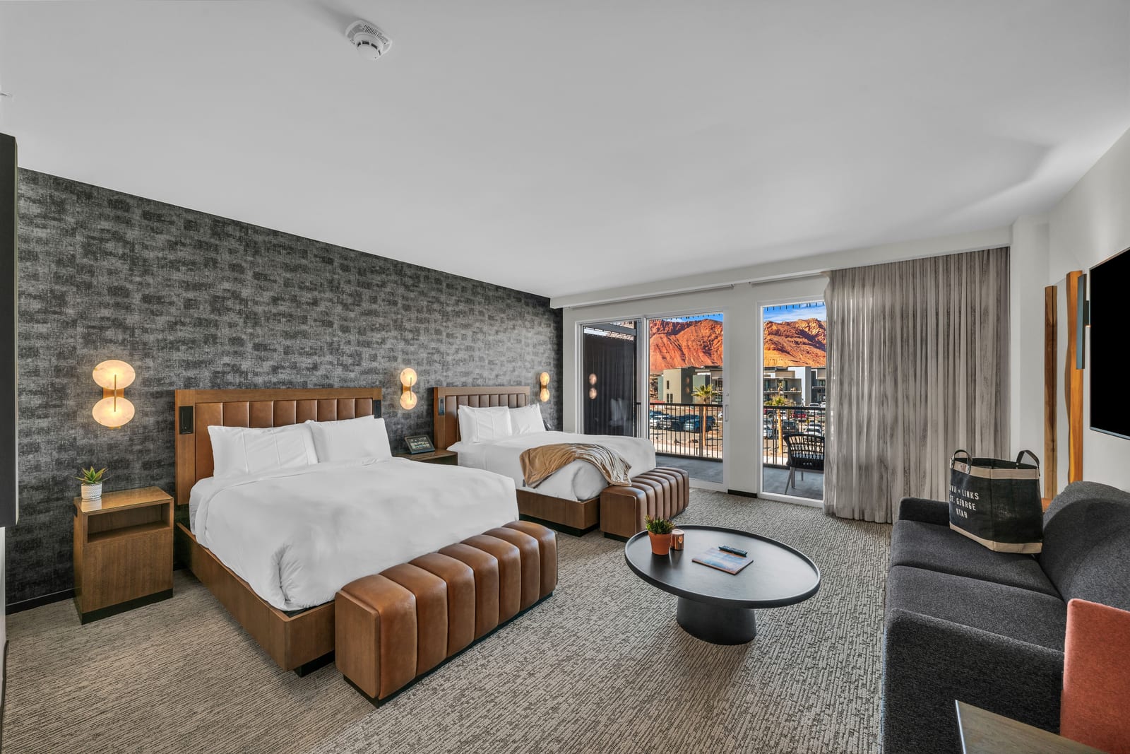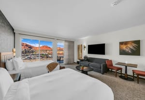 This Deluxe Double Queen Studio Condo in The Black Desert Resort offers breathtaking views of the iconic red rock landscapes and Snow Canyon. Fully furnished and completely turnkey, featuring a spacious layout and a well‑appointed kitchenette equipped with Wolf and Sub‑Zero appliances.