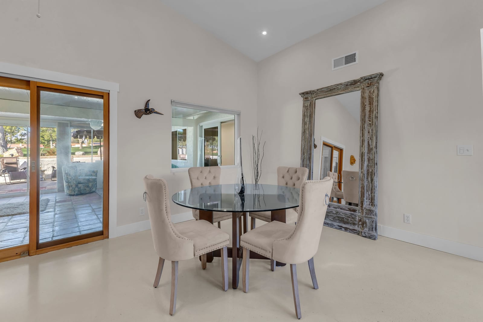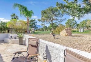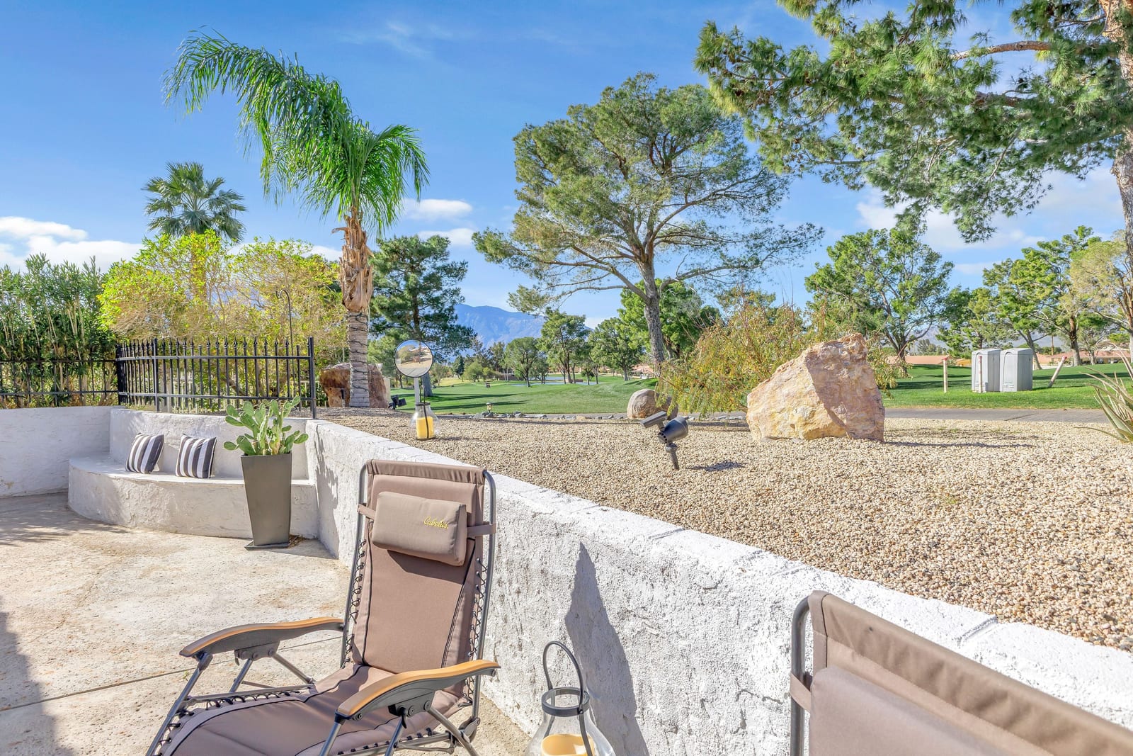 Nestled in the prestigious Mission Lakes community, this home is ideally positioned along the first hole of the golf course and just a short walk from the clubhouse. A private front courtyard, lush mature landscaping, and an array of fruit trees create a serene, resort-like setting from the moment you arrive.