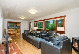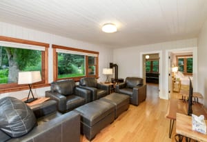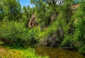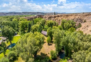 This impeccably maintained and fully furnished one-of-a-kind ranch-style home was thoughtfully created from three historic Sapinero cabins relocated prior to the damming of Blue Mesa Reservoir. Set on an irreplicable .74-acre parcel, the property is embraced by mature trees, multiple tributaries of the Gunnison River, and the dramatic Palisades—an 80-foot rock wall bordering the west and north sides of the home. These tributaries attract abundant wildlife, including ducks, blue heron, deer, and other native species, adding to the sense of privacy and connection to nature. The Palisades provide radiant warmth in colder months, keep the home naturally cool in the summer, and create a remarkable wind buffer, enhancing year-round comfort. Inside, two inviting living areas offer distinctive character and charm. One features a gas fireplace with a striking natural rock hearth shared between the living area and kitchen, while the larger living room includes a dining space and a beautiful freestanding gas stove. Tall windows throughout the home frame tranquil tributary views from one of the bedrooms, both living areas, and the kitchen. The stunning, recently updated kitchen showcases custom cabinetry, granite countertops, a stainless farmhouse sink, and stainless appliances. Gorgeous bathrooms complete this exceptional retreat, blending modern finishes with timeless character in an extraordinary natural setting. This property also features an oversized 2-car detached garage and a large shop space. Ideally located in the Island Acres Subdivision, just minutes from the City of Gunnison, Western Colorado University, Gunnison/Crested Butte Airport, Dos Rios Golf Course, Whitewater Park, and Hartman Rocks Recreation Area.