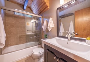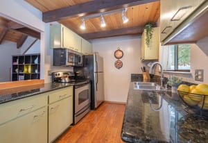 The updated kitchen and refreshed bathrooms add a modern touch while preserving the home’s authentic cabin character. A tiled entryway provides a practical mountain drop zone, while a separate laundry room adds everyday convenience. Excellent indoor/outdoor interaction enhances daily living, with the deck extending the main living area and offering a natural connection to the outdoors.