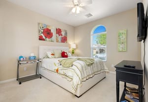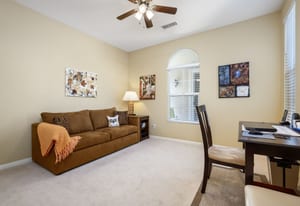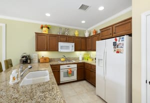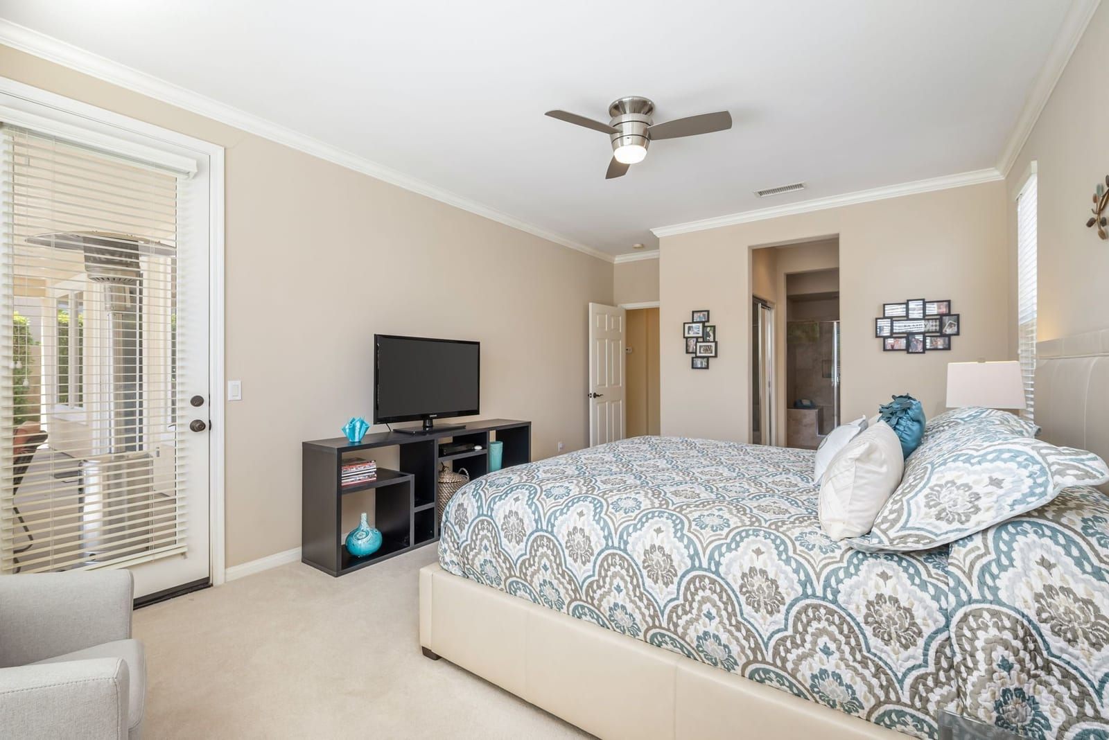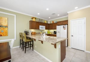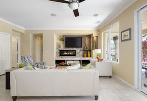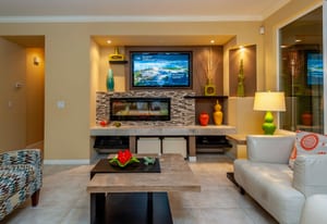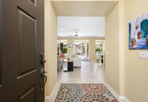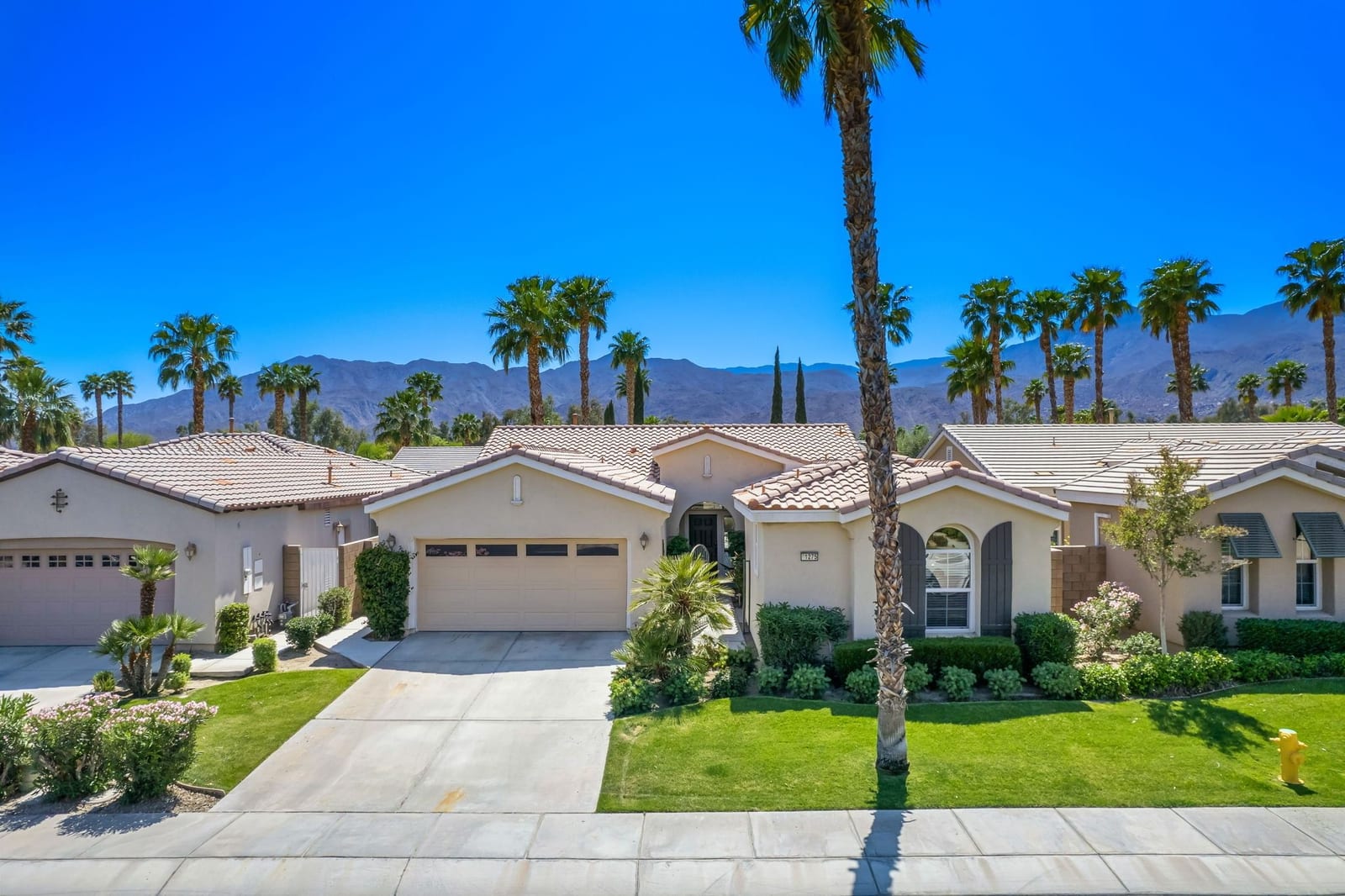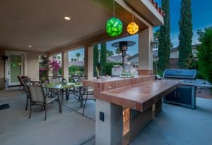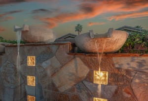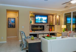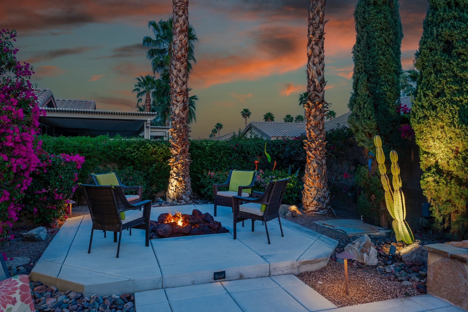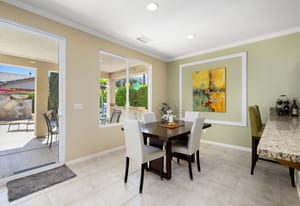 Live Life Beautifully in this bright and cheery Maurea model 1,641 SQ FT home with 3-bedrooms and 3-bathrooms including a detached Casita. Indoor, this delightful home with high ceilings and big picture windows offers exquisite contemporary built-in design elements and décor. Outdoor, the home offers the ultimate in day and night time relaxation and entertainment with peak-a-boo southern mountain views and custom features, including a luxurious cascading waterfall with built-in glass-block lighting and blazing fire bowls on either side, a built-in bar and BBQ area, and raised patio with seating around a lava stone firepit. The home is available Turnkey furnished including the beautifully curated furnishings and interior décor. The kitchen, dining, and great room flow seamlessly making the home feel much larger. The great room has crown molding and a custom crafted media center with linear fireplace, glass tile surround, and built-in big-screen TV. The kitchen meets every cook's needs, with gas cooktop and range, new microwave, dishwasher, beautiful wood cabinets and smooth slab granite on the kitchen counters. The kitchen and dining areas are open to the great room keeping you engaged with family and friends while cooking and entertaining. The primary bedroom suite is spacious and elegant, and the bathroom features dual vanities, a large walk-in shower with travertine stone surround, a linen-closet, and large walk-in closet. The guest bedroom is roomy with a mirrored closet and is located next to a full guest bath. Guests will love the privacy of the roomy detached Casita with closet and full bath. The garage has storage and fits 2-cars and a golf cart.