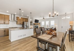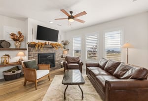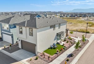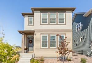 Welcome to this stunning 2-story home on a corner lot in the Revel Crossing community of Wolf Ranch. This residence showcases the most luxuriously updated Calista floor plan available, with thoughtful upgrades and elevated finishes that set this home apart. The open great room concept is the heart of this home, blending comfort and function in one inviting space. A cozy gas fireplace and custom wood shelving anchor the living area, while expansive windows with plantation shutters fill the room with natural light. The chef’s kitchen features a gas cooktop grill, built-in oven, designer vent hood, 42” upgraded cabinetry, granite countertops, and stainless-steel appliances, with an effortless flow into the dining area. From here, step directly outside to the fenced side-yard, a perfect extension of the entertaining space for dining al fresco or simply enjoying the views from outdoors. Upstairs, you’ll find three spacious bedrooms and two bathrooms, including a serene primary retreat with a large walk-in closet, an ensuite featuring a super shower with herringbone tile surround, and double vanity sinks with granite countertops. Wake up each morning to breathtaking mountain views, including Pikes Peak. Additional highlights include custom shelving in the laundry room, a convenient powder room on the main level, and a two-car garage. The home’s west-facing orientation offers glowing sunsets and warm light throughout the day. The home is equipped with a tankless water heater and central air. Located in a low-maintenance community where the HOA maintains the grounds, you’ll enjoy more free time to explore nearby Wolf Lake, miles of walking trails and community parks, Briargate Parkway dining, the Promenade Shops, and access to highly rated D-20 schools. Memorial North Hospital and Children’s Hospital are just minutes away, adding peace of mind and convenience. This property perfectly blends luxury, comfort, and location.