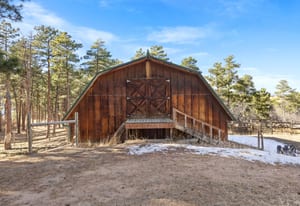 Nestled in the trees is this beautiful, sprawling property in the Valley Park neighborhood in Larkspur. This property features a ranch style home, a barn, a private yard and spacious fenced areas for horses to graze. There is nearby access to many trails at Sandstone Ranch; and beautiful scenery and wildlife. The home has four bedrooms on the main floor including a spacious primary suite with a sliding door to the oversized cobblestone patio. There is also abundant wood flooring and a large country kitchen with stainless appliances and granite counters. The basement is finished and much of it has drywall, electric and plumbing installed but needs a buyer to finish the project. The barn has four stalls, a tack room, and a loft for hay or a workshop. It is supplied with water and electricity, and the roof has been replaced. If you are looking for some elbow room that is not too far from modern conveniences in nearby Castle Rock and are willing to build some ‘sweat equity’ - this may be the one!