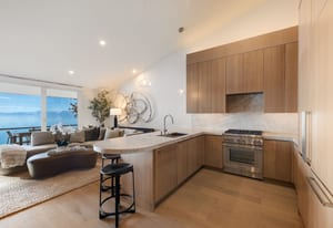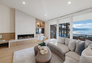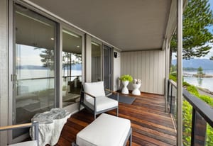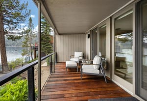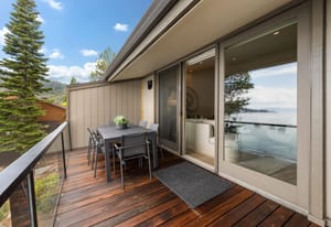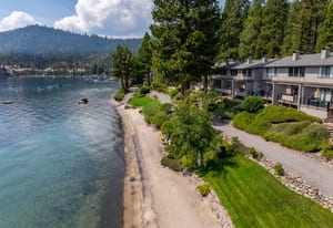 Exquisite lakefront condo, recently remodeled with panoramic lake views and steps to the water. Enjoy the private sandy beach, marina and buoy field, with slips and moorings available through the HOA. Custom finishes throughout featuring Rift White Oak cabinetry and trim, limestone fireplace and hearth, quartzite countertops, light fixtures and automatic window shades. All new Thermador appliances and beverage drawer, new furnace and air conditioning. Spacious primary suite with walk-in closest, additional built-in closets, steam shower and tub, covered deck with access to the lake. Ample storage under the deck for gear. Offered furnished with some exclusions. A pleasure to show!