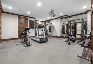 The walkout basement offers flexible living and entertaining spaces, including family room with gas fireplaces, wet bar, media room, craft/art room, wine room, full gym, and two guest bedrooms.