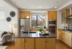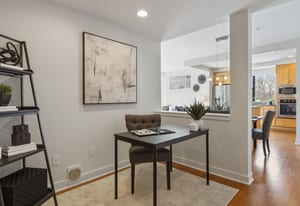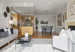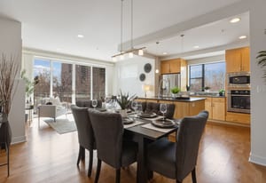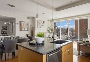 Flooded with natural light, the open floor plan flows seamlessly to a wraparound balcony with open views—ideal for morning coffee, evening unwinding, or casual entertaining. The kitchen is thoughtfully designed and highly functional, featuring a west-facing window, a generous island, and excellent workspace. A charming nook provides an ideal space for a home office or cozy reading corner.