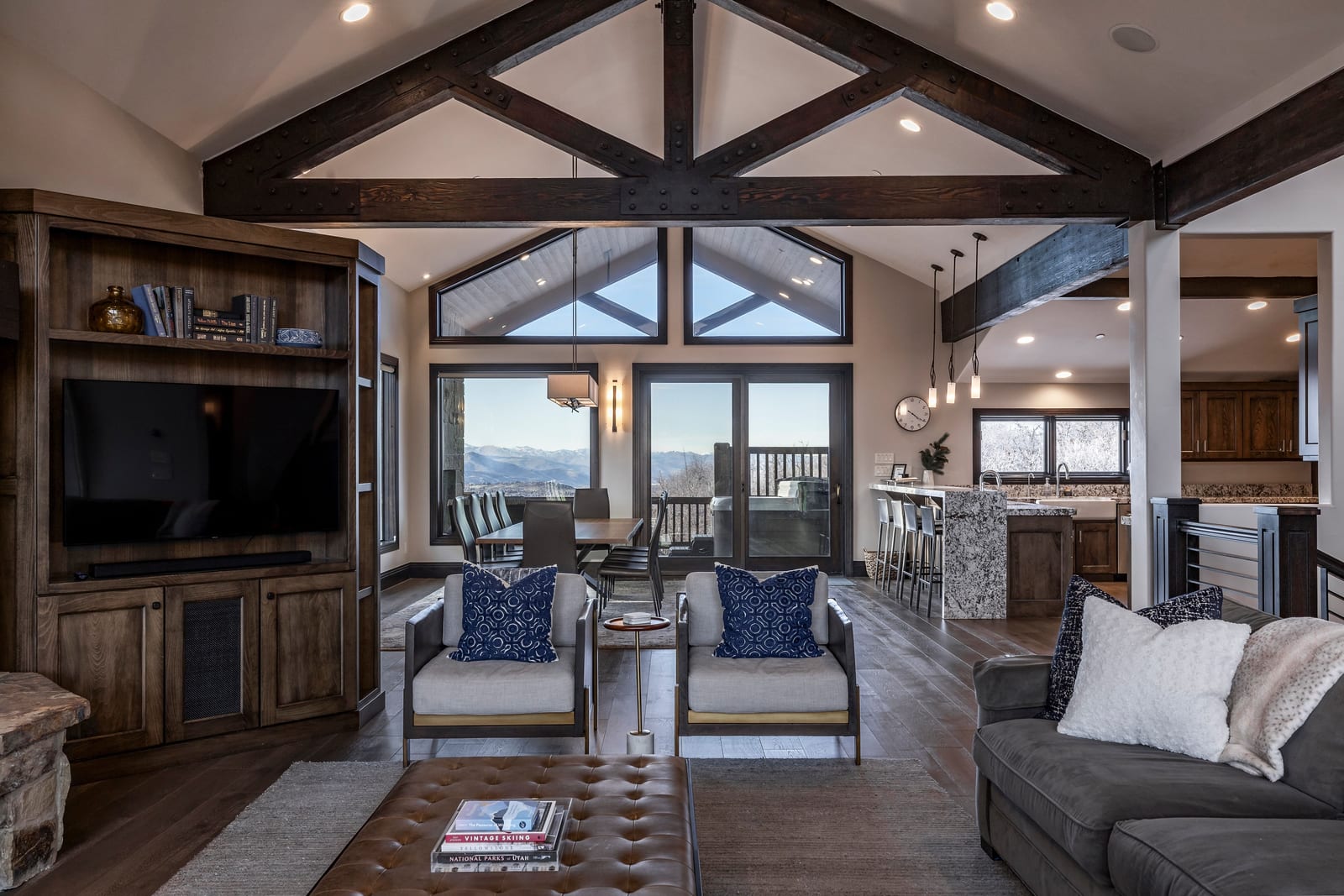 Set on a quiet ridge in Lower Deer Valley, this five-bedroom residence offers a rare experience with views spanning both Deer Valley and Park City. The home is thoughtfully designed to take advantage of its setting, with large windows and outdoor living spaces on both sides of the home. The main level features vaulted ceilings with exposed beams, a stone wood-burning fireplace, and an open layout connecting the living, dining, and kitchen areas. Expansive windows and doors open to a deck overlooking Deer Valley on one side, while the opposite side of the home offers a covered deck with fireplace and hot tub oriented toward Park City. This balanced design allows for exceptional light, views, and ...