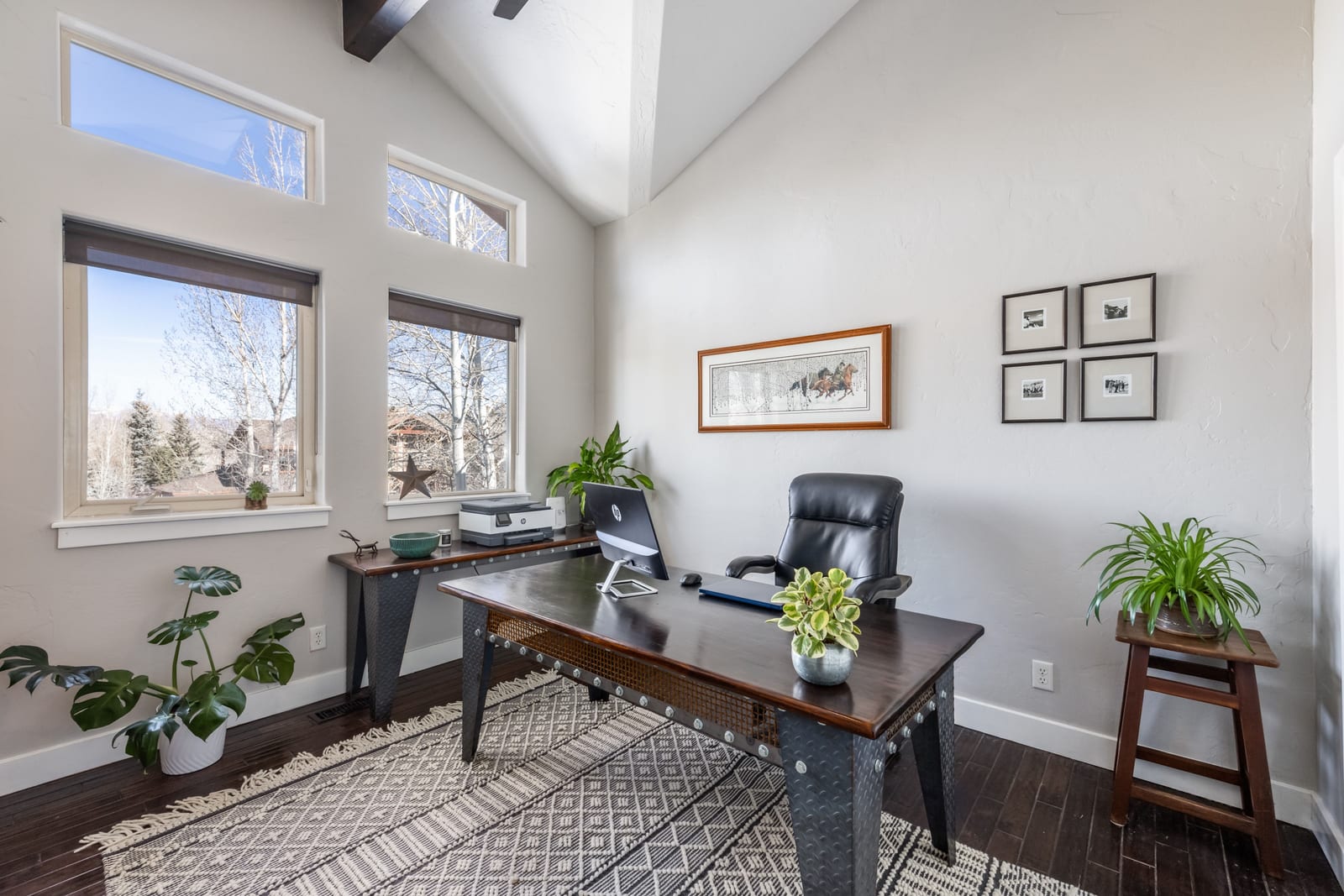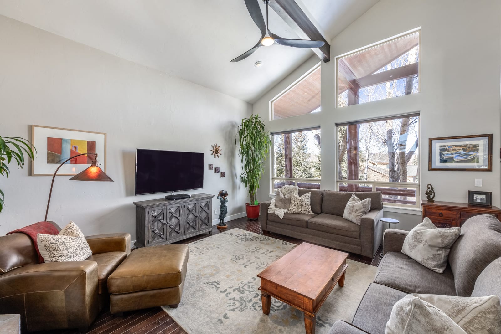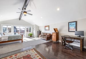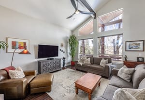 Situated in the heart of the Trailside neighborhood, this beautifully expanded 5-bedroom, 4-bath home offers a rare combination of space, thoughtful updates, and timeless design. A substantial addition enhances the livability of the floorplan, creating open, flowing spaces ideal for everyday living and entertaining, both indoors and outdoors. Vaulted ceilings and expansive windows bring in abundant natural light, while the open-concept main level features an entertainer’s kitchen with a seamless granite island, double LG wall ovens, gas cooktop, and French doors opening to a fully landscaped backyard. A dual-sided wood-burning fireplace with a stacked stone facade connects the living and dining areas, adding warmth and architectural character. The main-level primary suite offers wood floors, vaulted ceilings with exposed beams, a gas fireplace, and a spacious ensuite bath with freestanding soaking tub, dual vanities, and a glass-enclosed tile shower. A second main-level en suite bedroom or office offers flexibility for guests or work-from-home needs. Upstairs, a large bedroom with a vaulted ceiling, sitting area, and full bath enjoys sweeping mountain views and lives like a private guest suite or bonus room. The walk-out lower level includes a secondary living space with a gas fireplace, two additional bedrooms, an updated bathroom, an office or exercise room, and a generous laundry room with built-ins and access to the oversized 3 car garage. Outside, the fully fenced backyard is designed for four-season enjoyment, featuring mature trees, a stone patio, fire pit, built-in BBQ, in-ground trampoline, and custom putting green. Directly out the back gate, enjoy unparalleled access to miles of trails, open space, parks, soccer fields, tennis and pickleball courts, and playgrounds, placing an active, outdoor lifestyle quite literally at your doorstep. Recent updates include a new roof, water heater, furnace, and garage doors. Located just minutes from Trailside Elementary, ranked among the top 10 schools in the state, this home combines comfort, functionality, and enduring quality in one of Park City’s most sought-after communities.