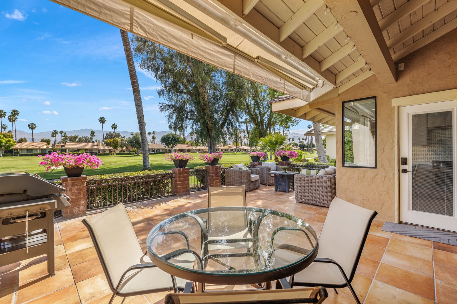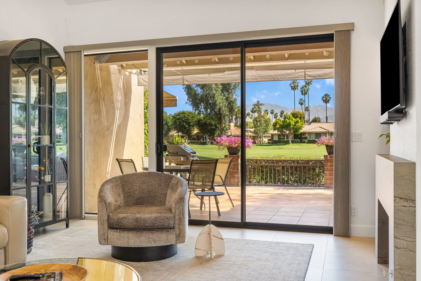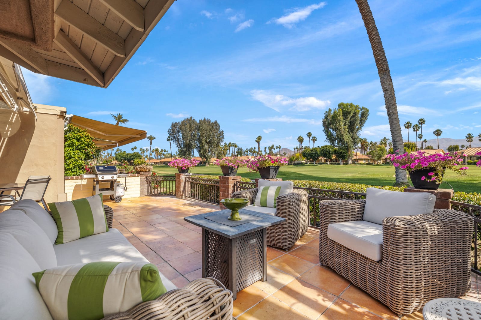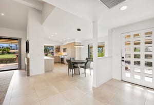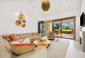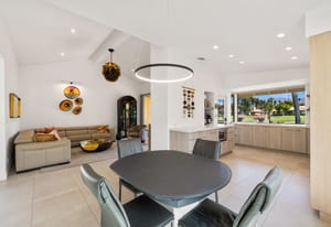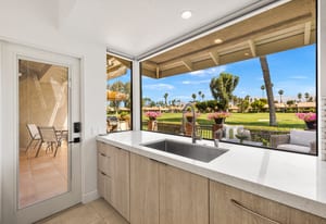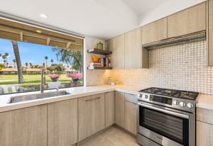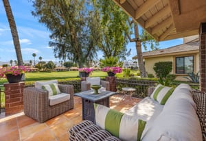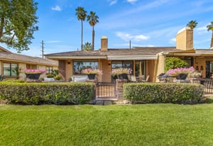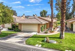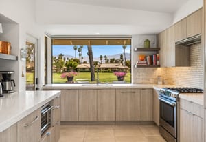 Overlooking the award-winning Ted Robinson designed golf course, this elevated, south-facing 2-bedroom, 2-bath home with a den offers sweeping golf and mountain views and has been fully remodeled from top to bottom. The open floor plan features large-format porcelain tile throughout, high-end appliances, custom cabinetry, custom interior doors, renovated bathrooms, and all new windows and sliders. Additional upgrades include a brand-new HVAC system, upgraded water heater, window treatments, and an oversized laundry room with incredible amount of storage. This home is truly move-in ready and designed for effortless desert living. Step outside to a generously sized, fenced-in patio, complete with a ...
