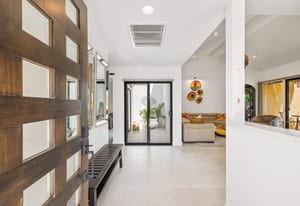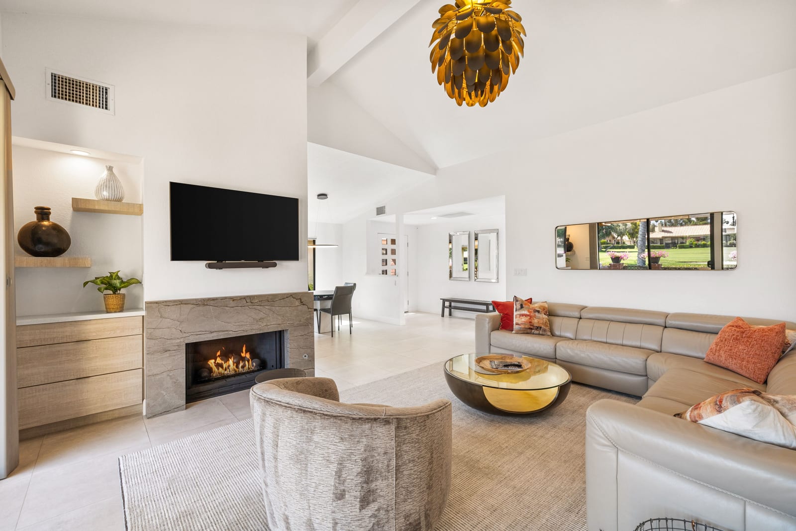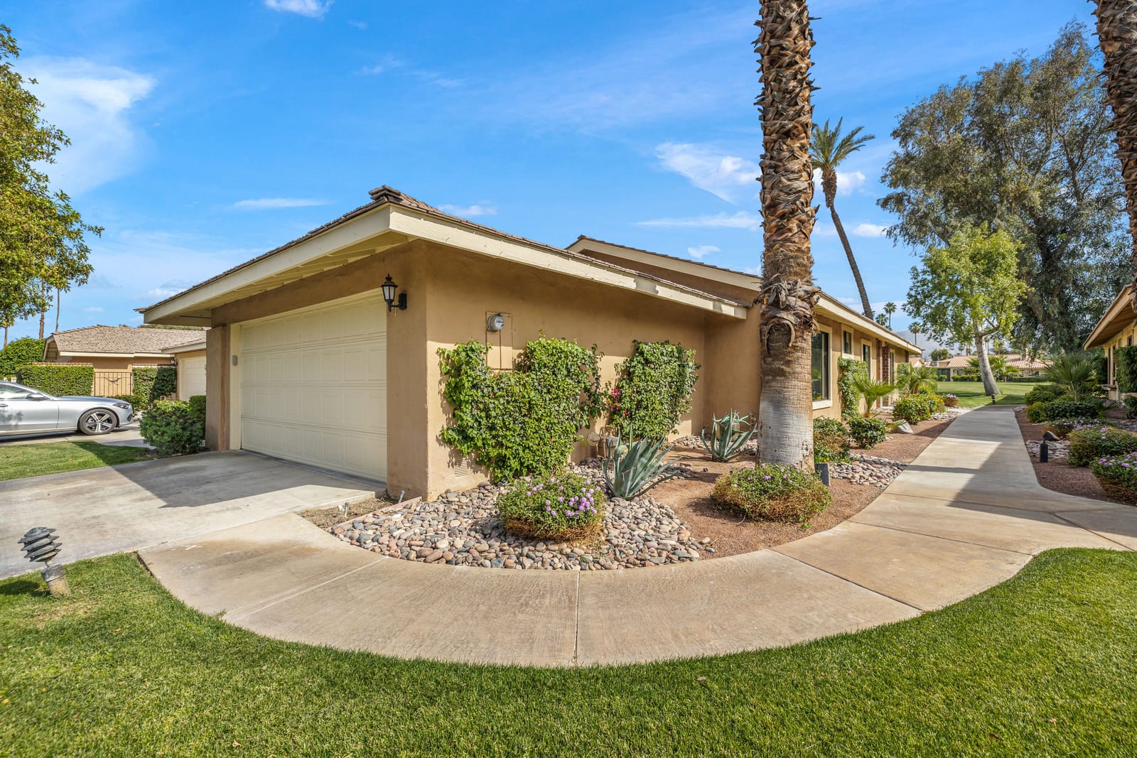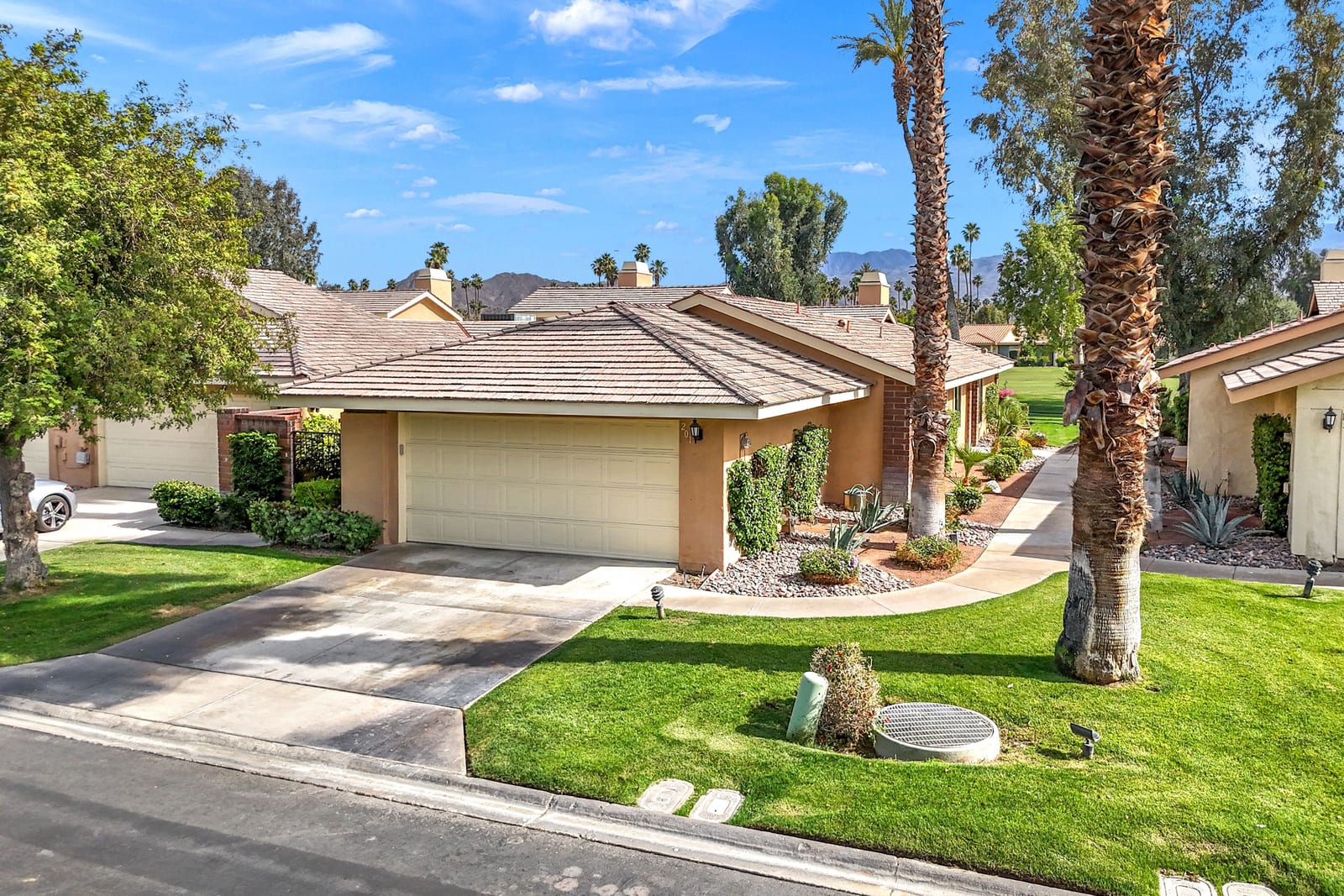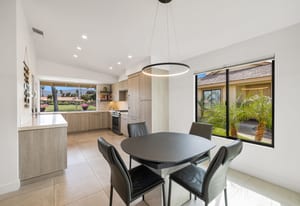 Overlooking the award-winning Ted Robinson designed golf course, this elevated, south-facing 2-bedroom, 2-bath home with a den offers sweeping golf and mountain views and has been fully remodeled from top to bottom. The open floor plan features large-format porcelain tile throughout, high-end appliances, custom cabinetry, custom interior doors, renovated bathrooms, and all new windows and sliders. Additional upgrades include a brand-new HVAC system, upgraded water heater, window treatments, and an oversized laundry room with incredible amount of storage. This home is truly move-in ready and designed for effortless desert living. Step outside to a generously sized, fenced-in patio, complete with a ...