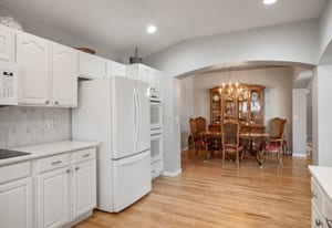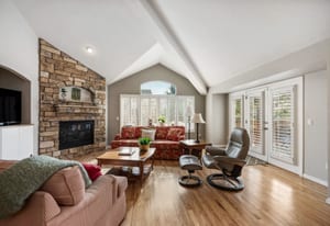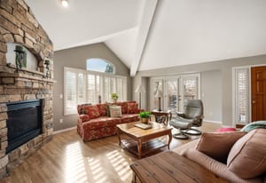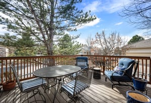 Set within one of the few gated communities that back directly to Cherry Creek Reservoir and only 30 minutes to DIA, this refined patio home offers a truly effortless lifestyle with rare access to open space. The residence includes 2,400 finished square feet plus an additional 1,800-square-foot basement, providing exceptional flexibility. Hardwood floors run throughout the main living areas, complemented by an updated kitchen with white cabinetry, quartz countertops, and tile backsplash that create a timeless, understated aesthetic. Vaulted ceilings and a fireplace anchor the living room, while plantation shutters add architectural polish. The main-floor primary suite features a five-piece bath and walk-in closet, with a second main-level bedroom ideal for guests or a home office. Upstairs, a secondary living room, guest bedroom, and bathroom offer a private retreat. A rebuilt deck, shaded by mature trees, extends the living space outdoors. HOA includes exterior maintenance, landscaping, snow removal, trash, recycling, and access to a clubhouse, pool, and hot tub. Step outside to direct reservoir trail access—a rare opportunity to find.