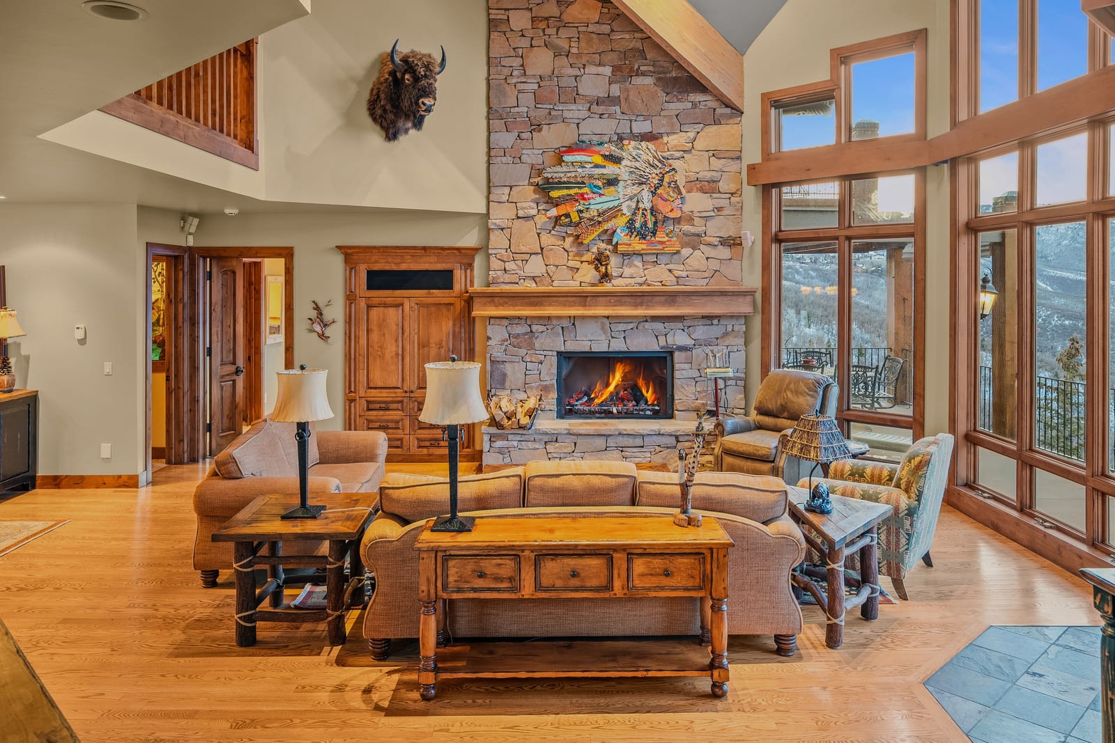 Inspired by classic Deer Valley mountain style, this exceptional legacy residence showcases panoramic views, vaulted ceilings, and floor-to-ceiling glass filling the great room with natural light while framing the surrounding landscape. Designed by renowned architect Michael Upwall, the home spans over 7,300 square feet, offering five generously sized bedrooms, six bathrooms, and a thoughtful balance of warmth, scale, and livability. Wood-burning fireplaces, a large chef's kitchen, formal dining area, and multiple entertaining spaces—including a private screening room and billiard area - create an ideal setting for hosting family and friends. Savor the mountain scenery and unforgettable ...