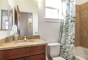 The main level features a private primary suite with a spacious full bath, walk-in closet, and direct access to the deck. The upper level offers an open-concept kitchen and living area, two additional bedrooms, a ¾ bathroom, and a powder bath.