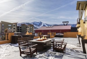 This thoughtfully designed home features large windows that flood the living spaces with natural light. Just steps from the front door, the shared terrace with fire pit offers an ideal setting for après-ski gatherings, post-ride entertaining, or relaxing while taking in the mountain scenery.