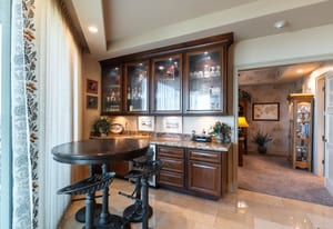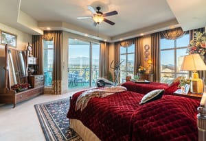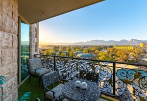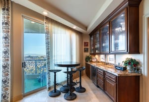 Welcome to 305 at One Queensridge Place - where timeless elegance meets elevated high-rise living. Rich wood accents & designer custom wall treatments create a warm, sophisticated ambiance, perfectly complementing the open-concept floorplan designed for entertaining. The expansive living & dining areas flow seamlessly into a beautifully appointed kitchen, while a dedicated wet bar & private wine room set the stage for hosting intimate gatherings or larger soirées in style. Floor-to-ceiling windows frame views of the LV Strip & surrounding mountains, all while overlooking the lush, manicured community gardens below — offering a rare blend of vibrant city energy and serene natural beauty. Offered with the option to include furnishings this home presents a turnkey opportunity within one of Las Vegas’ most prestigious guard-gated high-rise communities, complete with resort-style amenities, white-glove service & an unparalleled lifestyle.