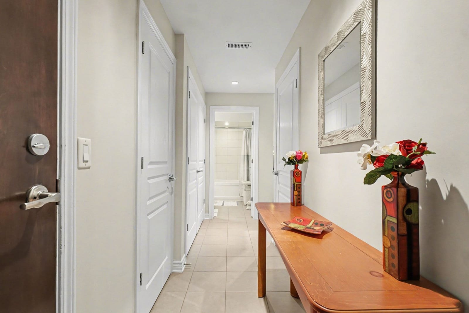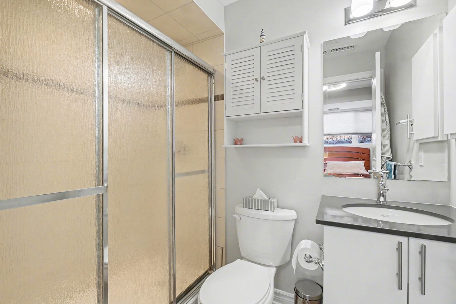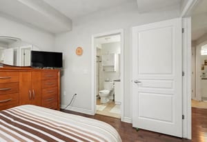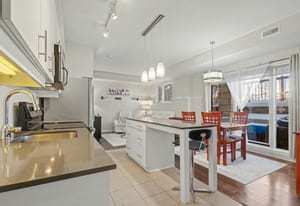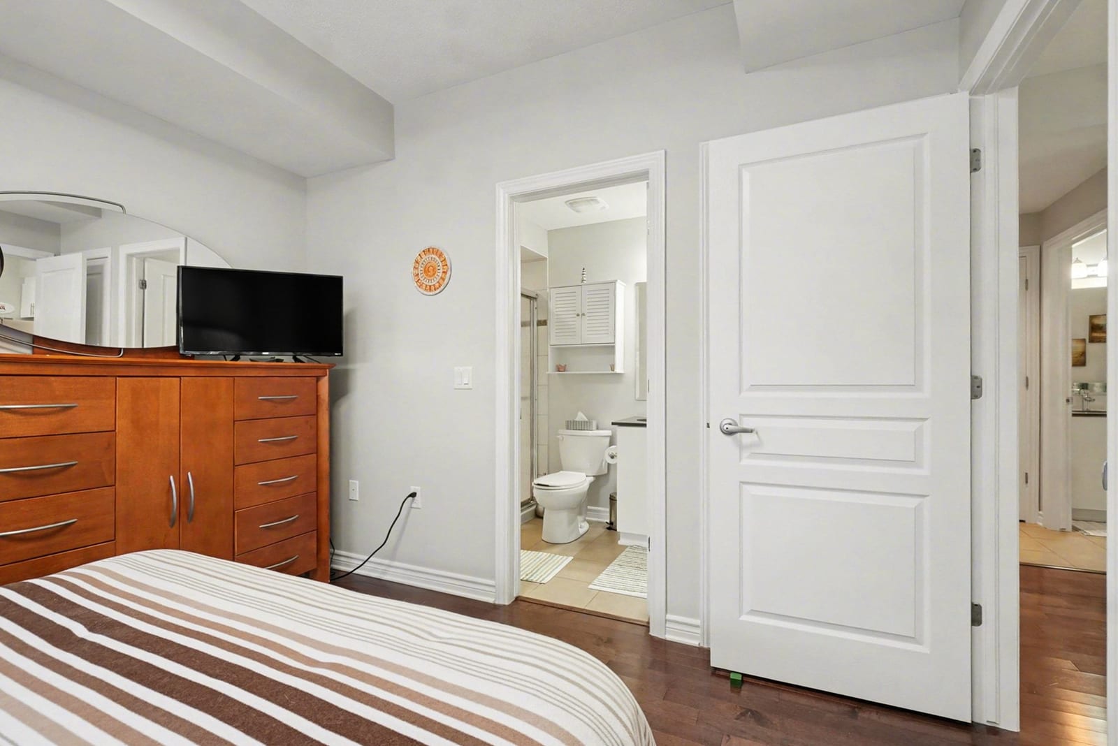 Perfectly Located Condo! Just steps away from the O-Train Cyrville Station, this exceptional unit features 2 bedrooms and 2 bathrooms, and is ready for you to move in. The bright, open-concept layout is accentuated by high ceilings, creating a spacious atmosphere. The kitchen is a highlight, showcasing quartz countertops, a breakfast bar, and stainless steel appliances. Elegant hardwood flooring flows seamlessly through the living and dining spaces, extending into both bedrooms. This condo offers the convenience of a 3-piece ensuite with an oversized shower and in-unit laundry. Step through the patio doors to discover a covered, ground-level private interlock terrace that overlooks a park, with no front neighbors. Furthermore, this home includes one parking space, one storage locker, and bike storage for added convenience.
