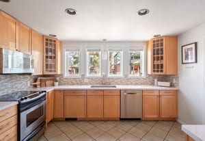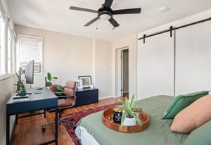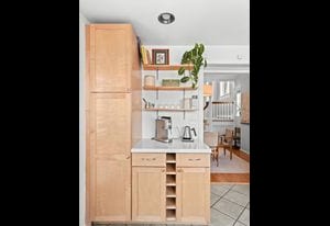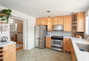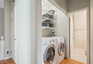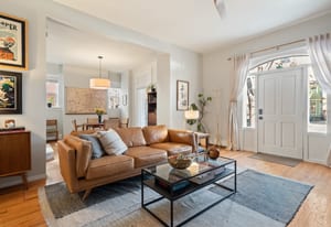 Recent owner improvements add even more style, including designer light fixtures and custom floating shelving in the living room that bring warmth, character, and charm to an already magazine-worthy space.