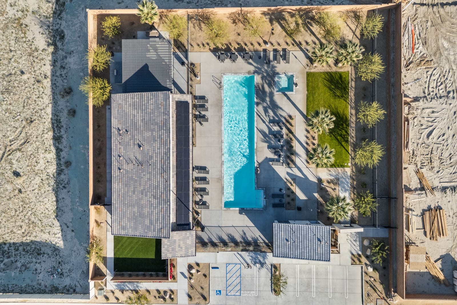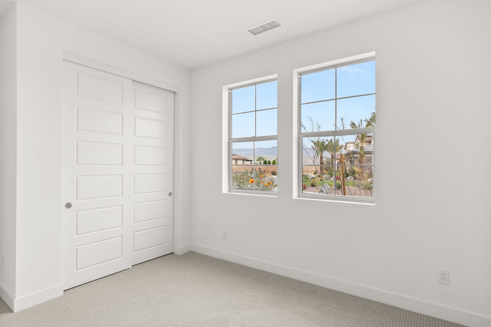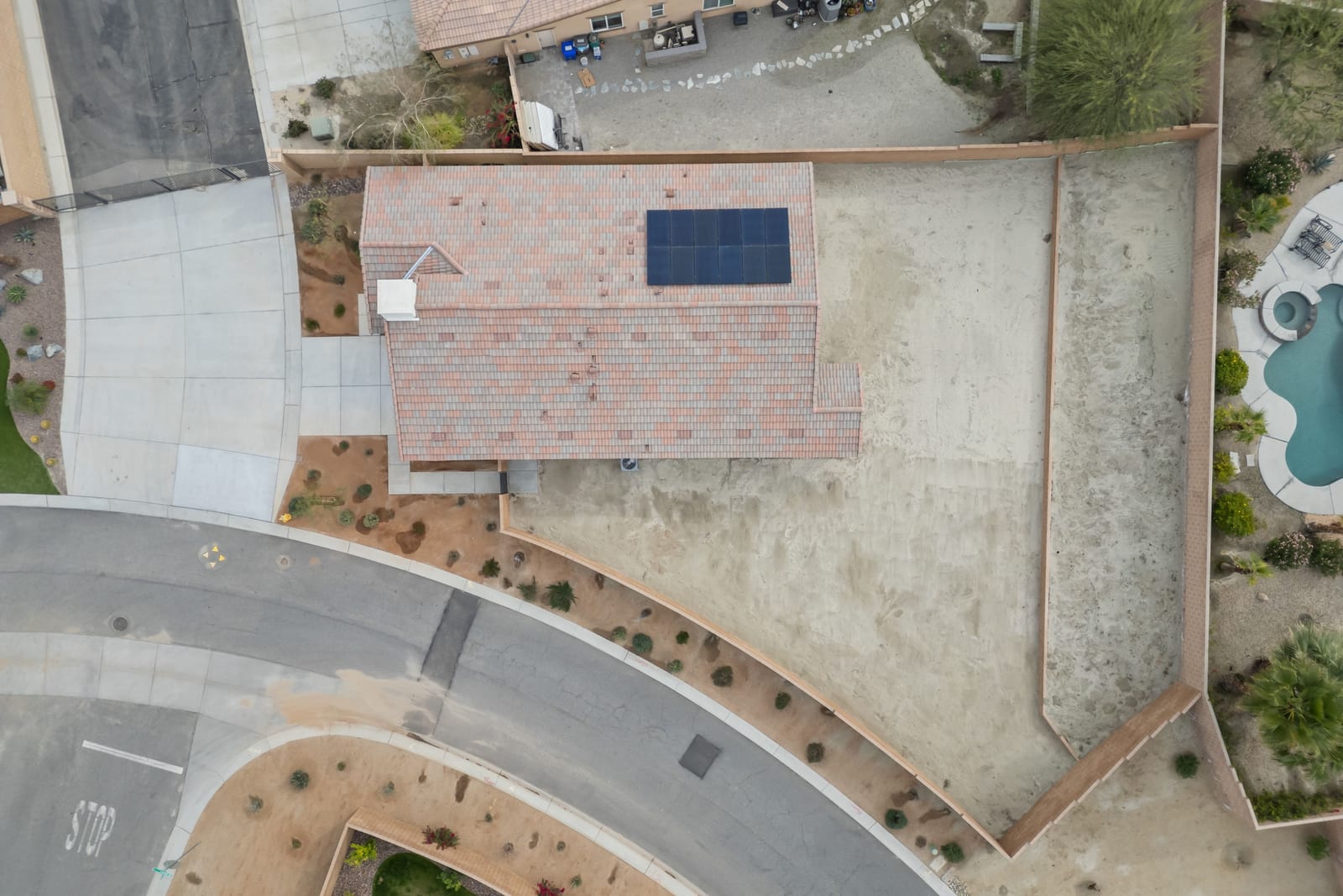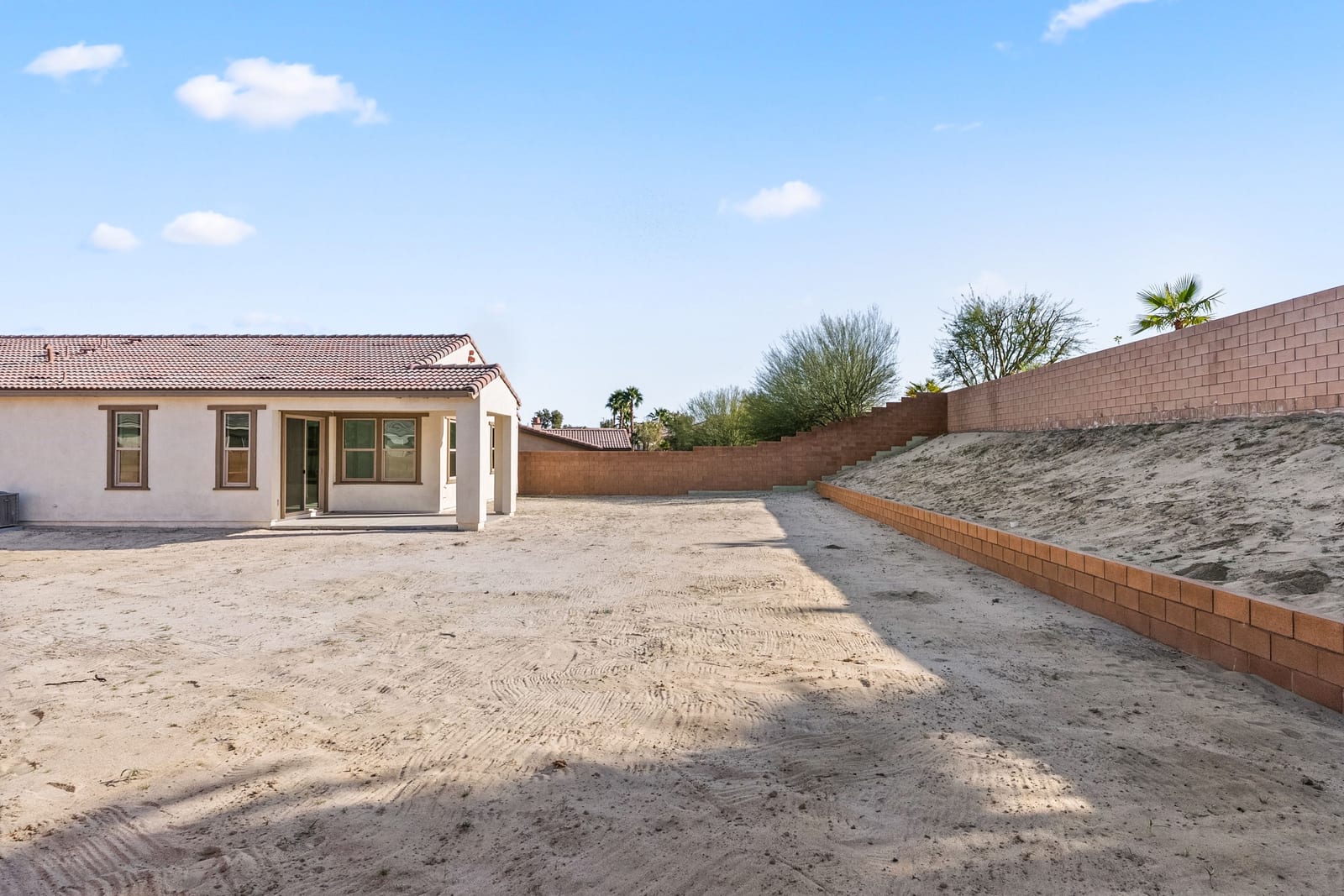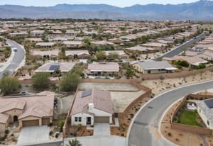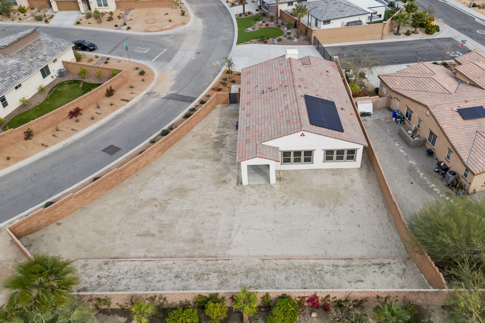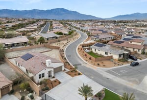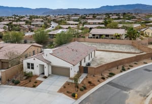 Brand-new and never lived in, this highly upgraded Ponderosa Home Builders residence is set on a rare, oversized private corner lot exceeding 11,300 sq. ft., offering a level of space, privacy, and future flexibility that is hard to find. The thoughtfully designed floor plan includes two bedrooms plus a den, providing flexibility for a home office, guest space, or additional living area. With ample room to add a pool, spa, and a ADU, this property delivers exceptional long-term lifestyle and investment potential. Built by Ponderosa Home Builders, a developer recognized for superior craftsmanship, structural quality, and enduring finishes, this great room-style home is thoughtfully designed for modern living and entertaining. The kitchen features quartz countertops, double ovens, a built-in refrigerator, under-cabinet lighting, a spacious walk-in pantry, and upgraded flooring, creating a refined yet highly functional living space. Eight-foot doors throughout enhance the home's open, upscale feel, while a tankless water heater and owned solar system contribute to long-term energy efficiency and comfort. Residents enjoy access to a newly completed clubhouse featuring a resort-style pool and spa, state-of-the-art fitness center, yoga lawn, and BBQ area. Conveniently located near shopping, dining, entertainment, and medical centers, with Palm Springs approximately twenty minutes away. A truly unique opportunity to own a pristine, newly built Ponderosa home offering uncommon privacy, an oversized corner lot, premium upgrades, and a level of construction quality that sets it apart!