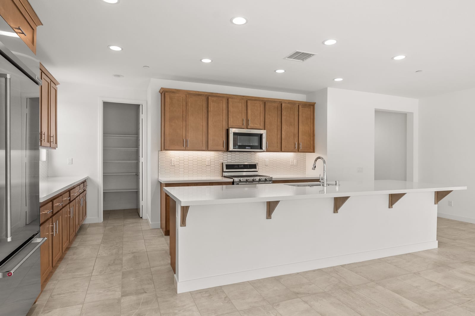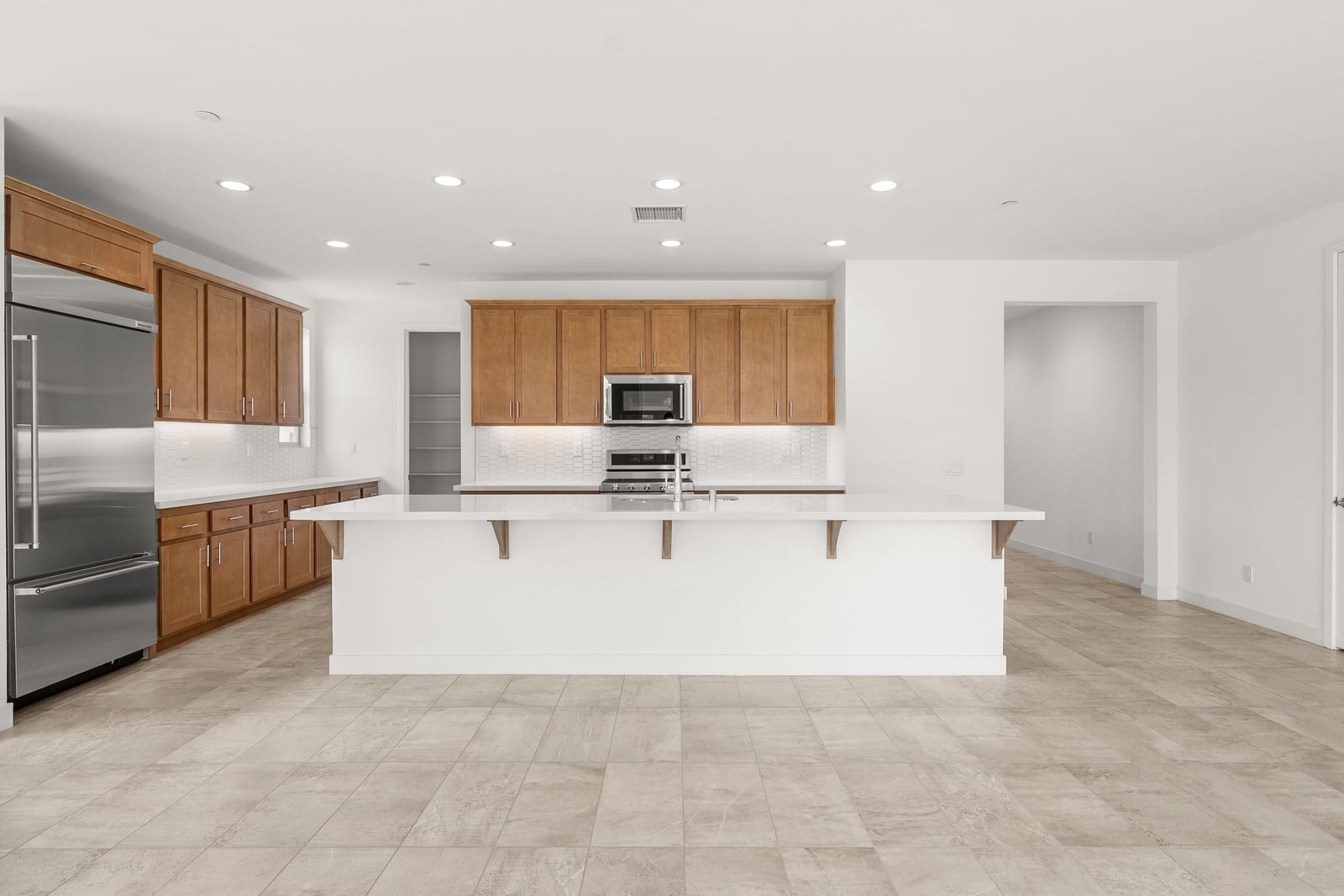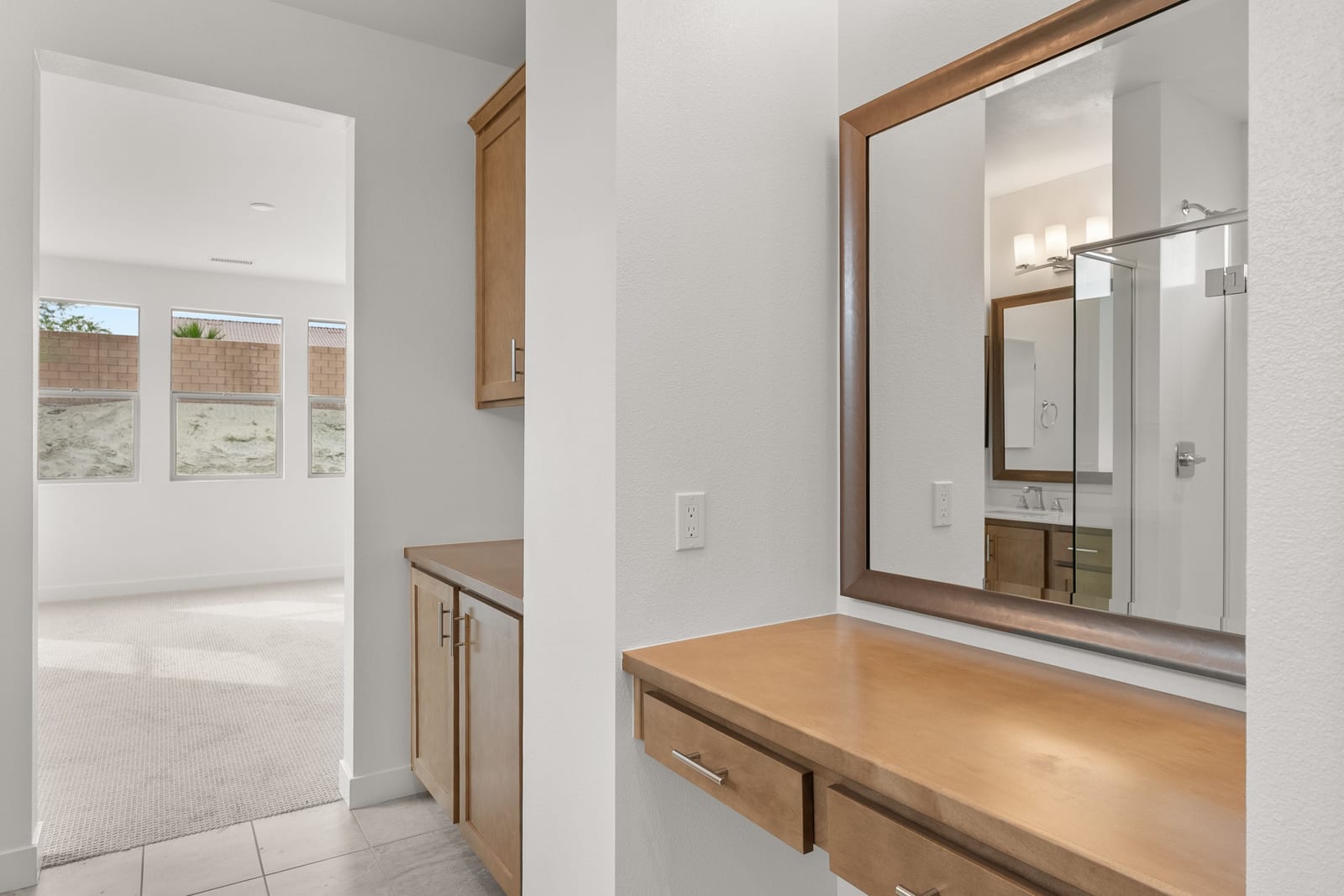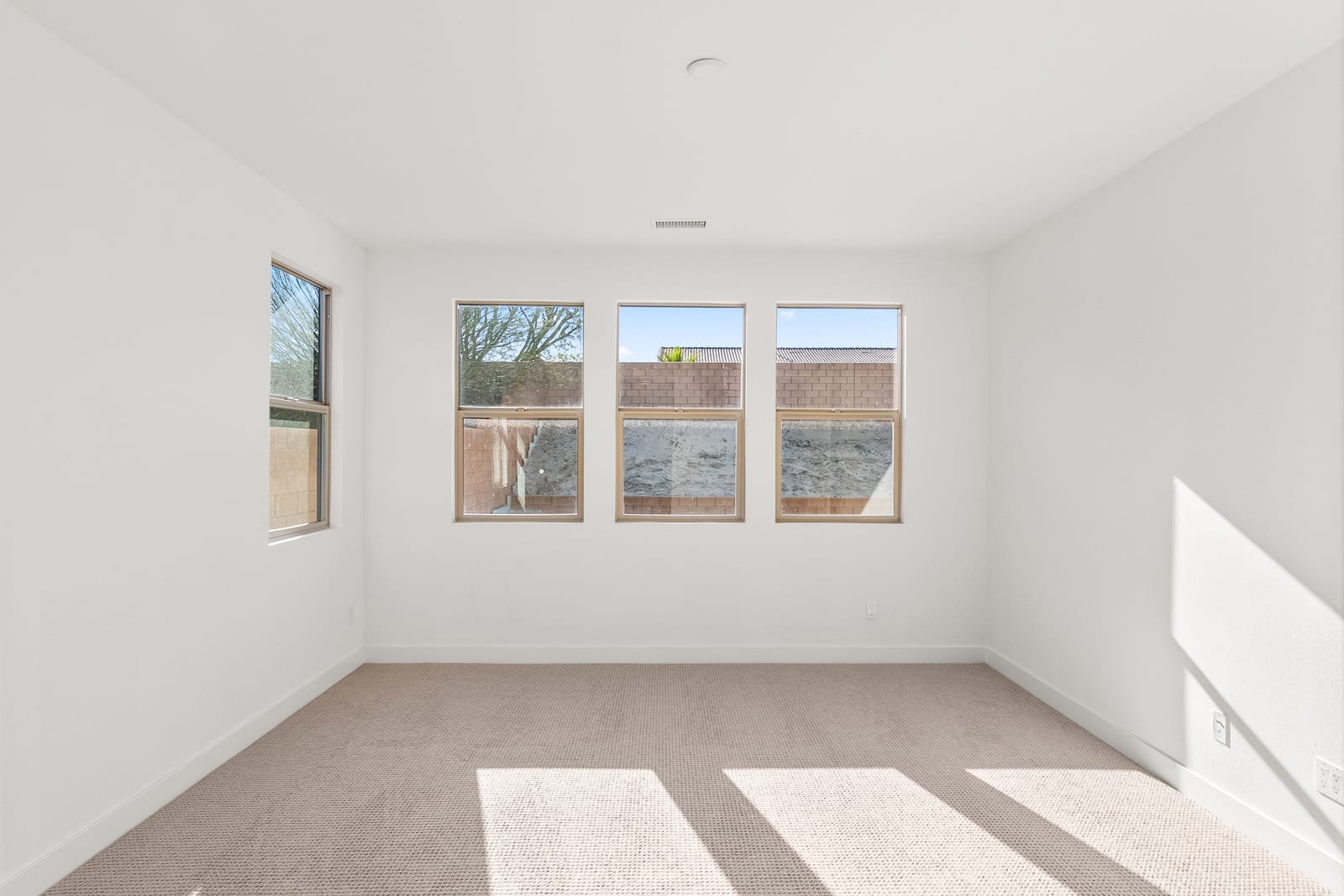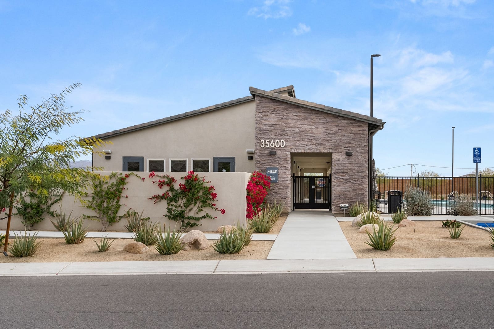 Brand-new and never lived in, this highly upgraded Ponderosa Home Builders residence is set on a rare, oversized private corner lot exceeding 11,300 sq. ft., offering a level of space, privacy, and future flexibility that is hard to find. The thoughtfully designed floor plan includes two bedrooms plus a den, providing flexibility for a home office, guest space, or additional living area. With ample room to add a pool, spa, and a ADU, this property delivers exceptional long-term lifestyle and investment potential. Built by Ponderosa Home Builders, a developer recognized for superior craftsmanship, structural quality, and enduring finishes, this great room-style home is thoughtfully designed for modern living and entertaining. The kitchen features quartz countertops, double ovens, a built-in refrigerator, under-cabinet lighting, a spacious walk-in pantry, and upgraded flooring, creating a refined yet highly functional living space. Eight-foot doors throughout enhance the home's open, upscale feel, while a tankless water heater and owned solar system contribute to long-term energy efficiency and comfort. Residents enjoy access to a newly completed clubhouse featuring a resort-style pool and spa, state-of-the-art fitness center, yoga lawn, and BBQ area. Conveniently located near shopping, dining, entertainment, and medical centers, with Palm Springs approximately twenty minutes away. A truly unique opportunity to own a pristine, newly built Ponderosa home offering uncommon privacy, an oversized corner lot, premium upgrades, and a level of construction quality that sets it apart!