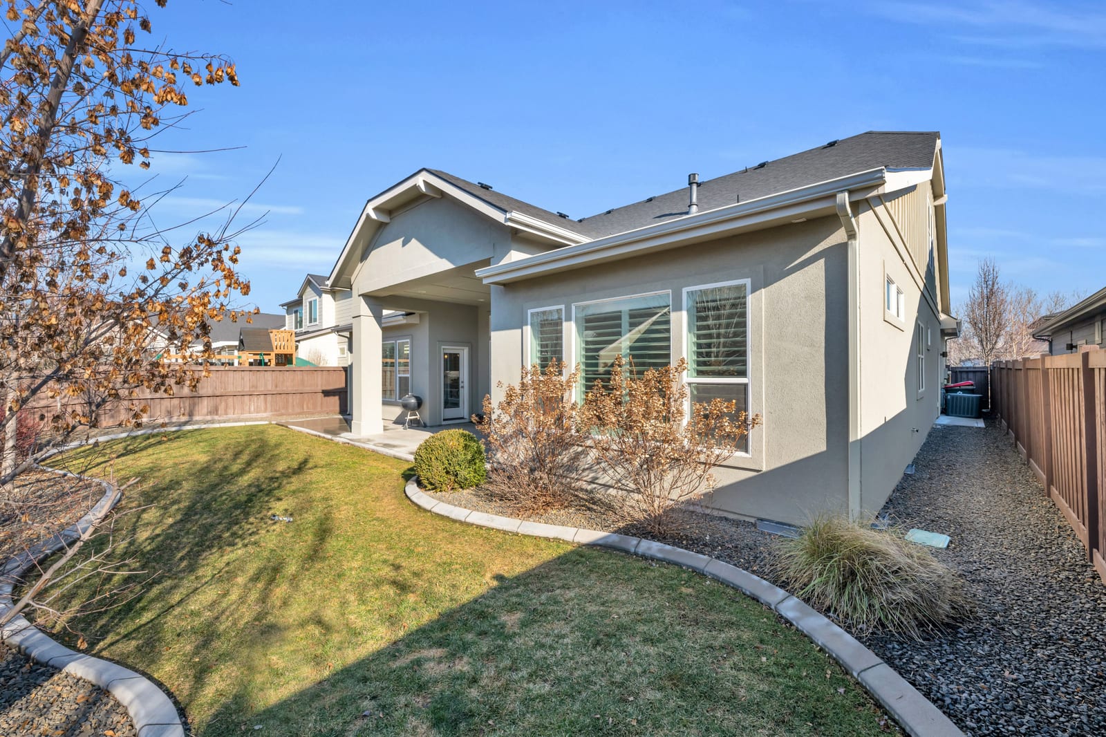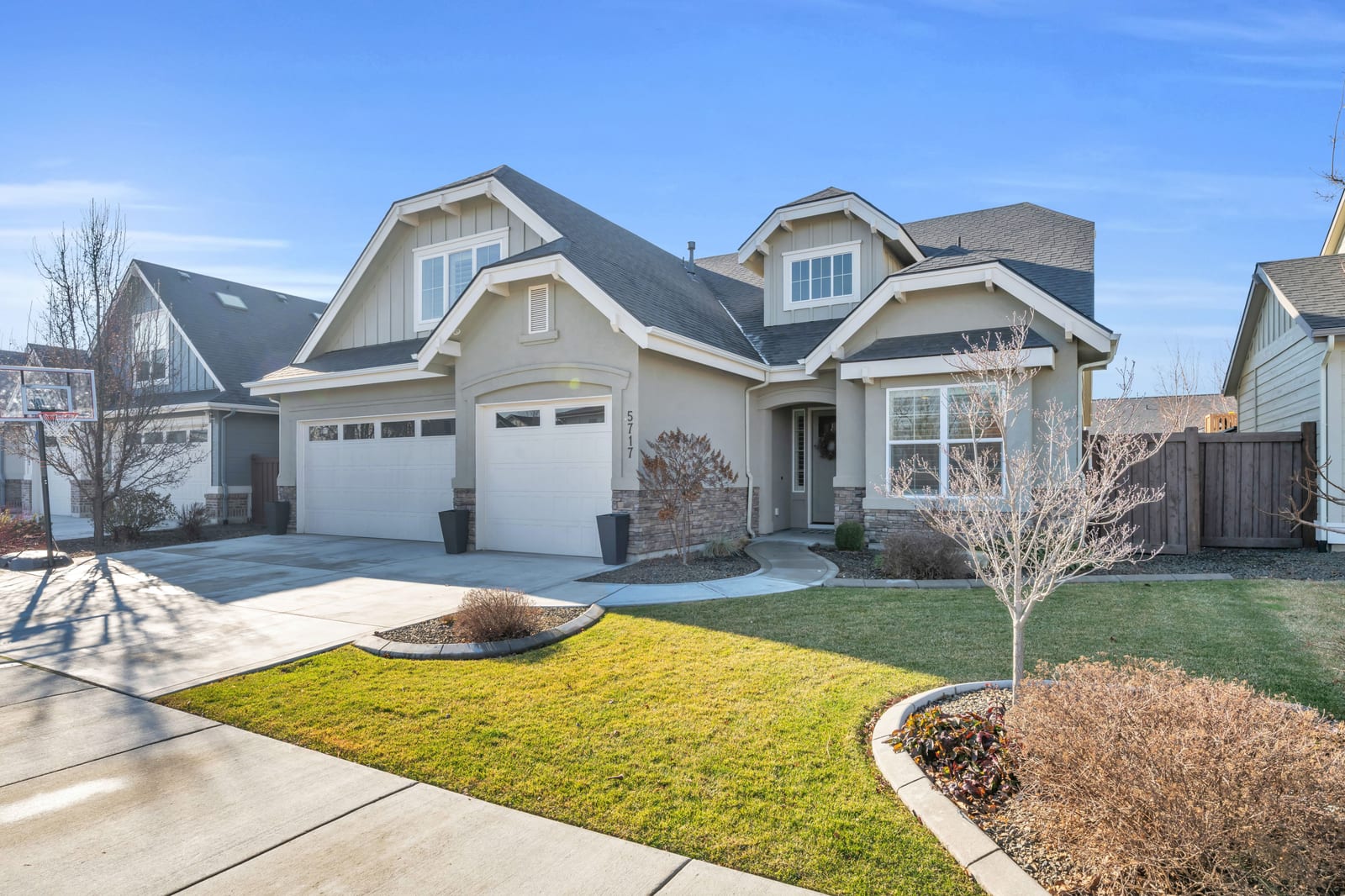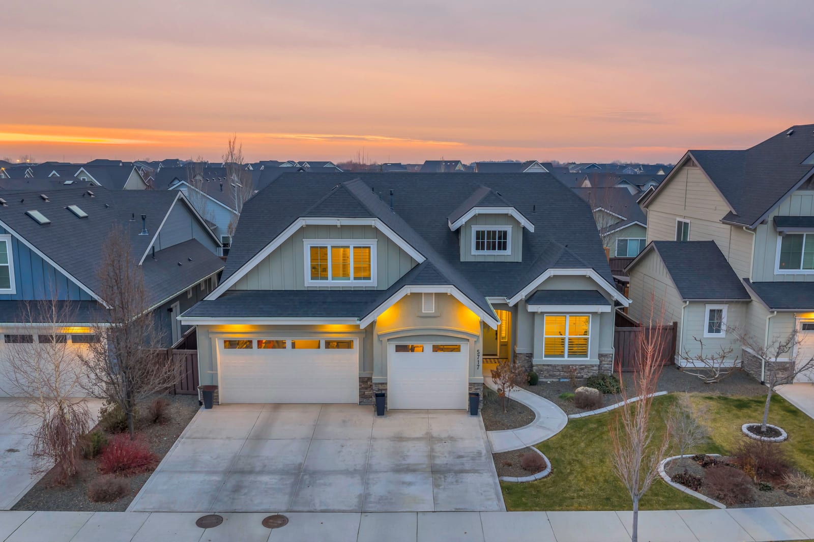Welcome to this beautifully maintained, better-than-new home featuring plantation shutters throughout, located in the highly sought-after Bainbridge subdivision of NW Meridian. This home offers 3,010 sq. ft. with 4 bedrooms and a dedicated main-level office, blending thoughtful design with timeless finishes. The open-concept main living area features real hardwood floors and a light-filled family room with vaulted ceilings. The gourmet kitchen includes Bosch appliances, quartz countertops, ample cabinetry, and generous prep space—ideal for daily living and entertaining. The primary suite is located on the main floor and offers a spacious walk-in closet, dual vanities, a soaking tub, and a ...