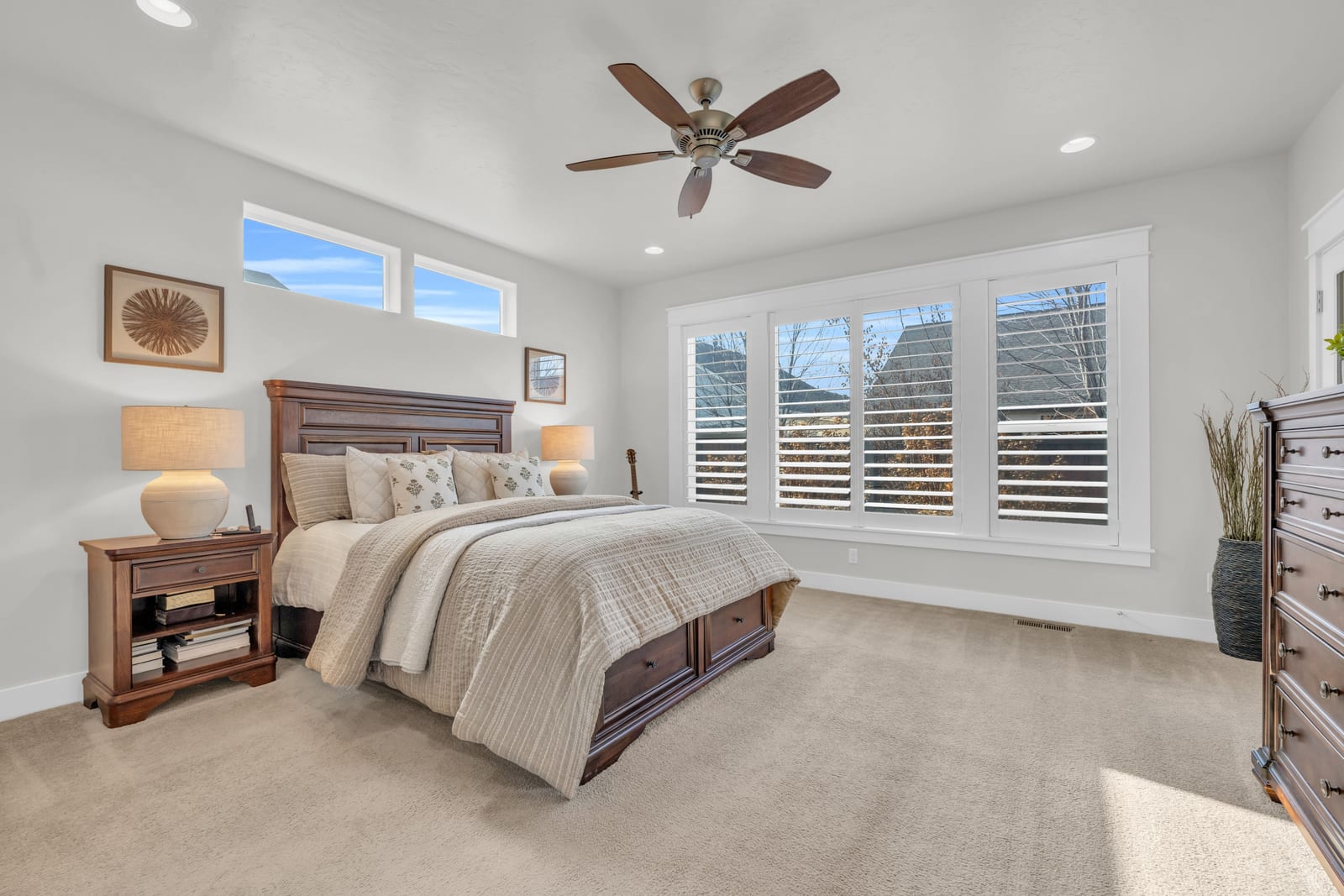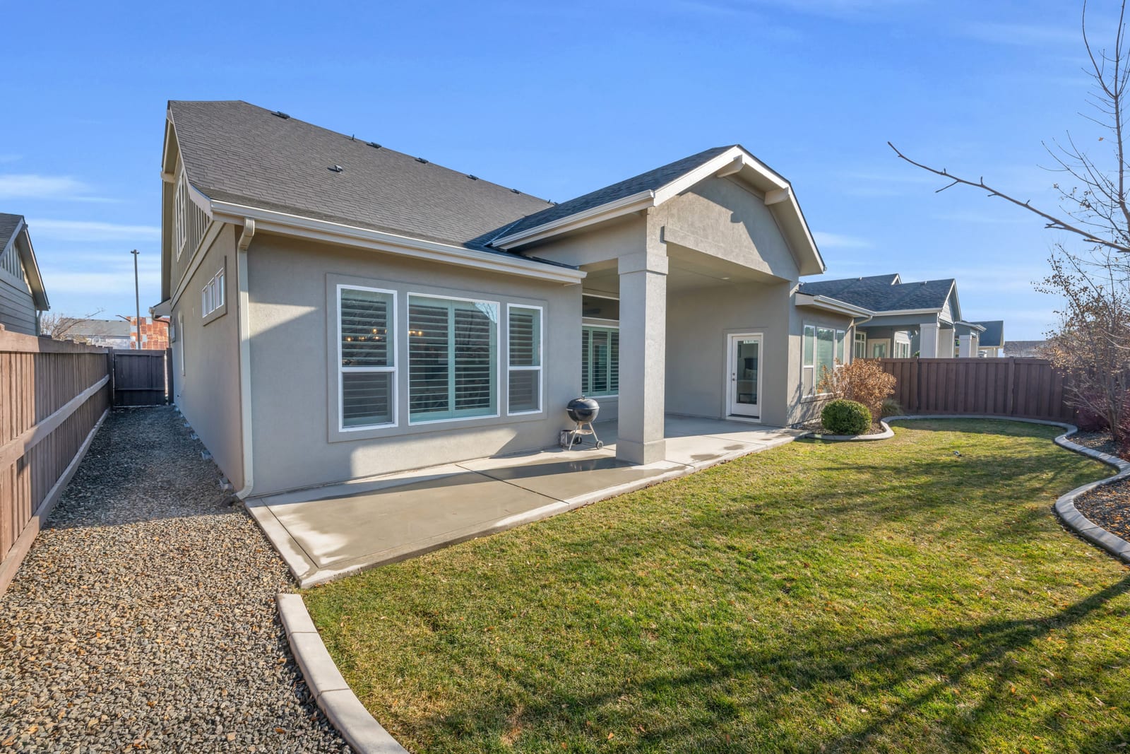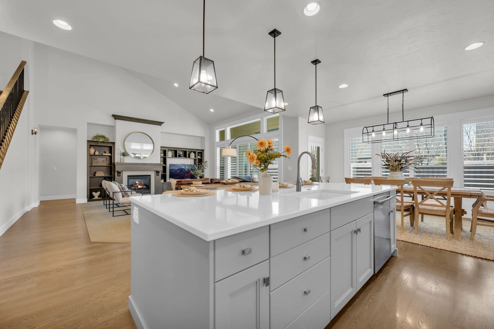 Welcome to this beautifully maintained, better-than-new home featuring plantation shutters throughout, located in the highly sought-after Bainbridge subdivision of NW Meridian. This home offers 3,010 sq. ft. with 4 bedrooms and a dedicated main-level office, blending thoughtful design with timeless finishes. The open-concept main living area features real hardwood floors and a light-filled family room with vaulted ceilings. The gourmet kitchen includes Bosch appliances, quartz countertops, ample cabinetry, and generous prep space—ideal for daily living and entertaining. The primary suite is located on the main floor and offers a spacious walk-in closet, dual vanities, a soaking tub, and a ...