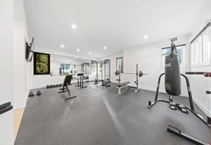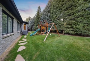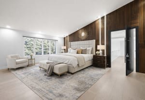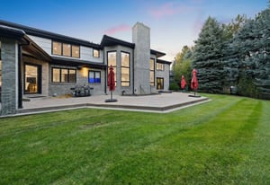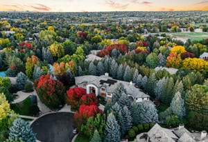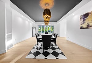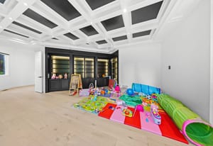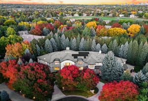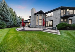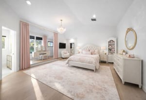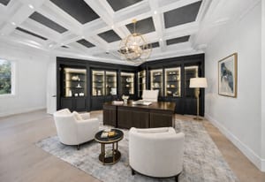 Set on nearly an acre with mature trees and manicured landscaping, the estate offers both a serene retreat and entertainer’s dream.