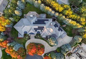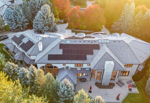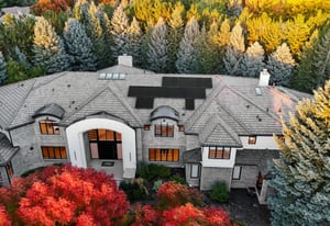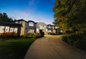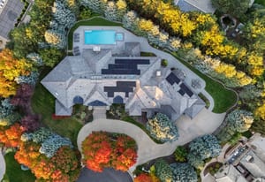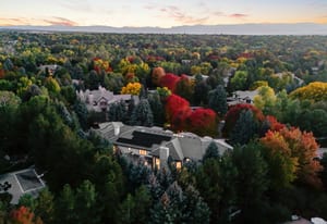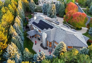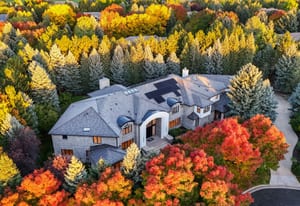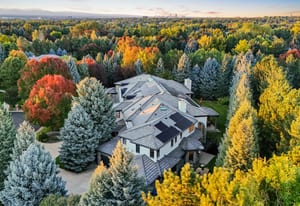 Additional highlights include an attached apartment with private entrance and full kitchen, two home offices, upper-level fitness studio with ensuite bath, finished lower level with game room, art room, and abundant storage. A Savant smart-home system, automated shades, nine heating/cooling zones, owned solar panels offsetting 140% of energy costs, and advanced security with cameras enhance the property.