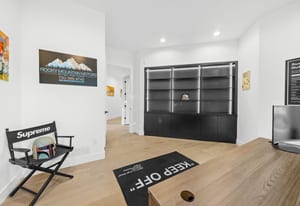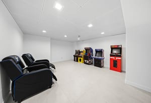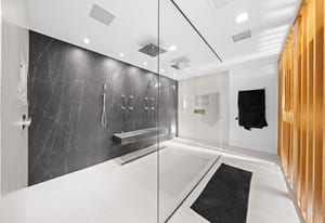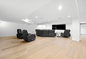 Upstairs, the primary suite offers a private balcony, fireplace, spa-inspired bath with double walk-in shower, soaking tub with water feature, and boutique-style dressing room with custom lighting and sound. Five additional ensuite bedrooms provide private retreats with luxury finishes.