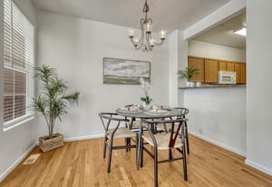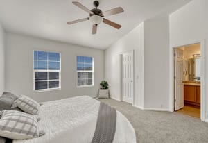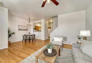 Welcome home to this inviting, move-in-ready three-bedroom, three-bath townhome featuring fresh interior paint, new carpet, luxury vinyl flooring in the kitchen, and new blinds throughout. The open, light-filled main level offers a welcoming floor plan ideal for both everyday living and effortless entertaining. The kitchen offers ample cabinet space, a pantry, all existing appliances, and a breakfast bar overlooking the dining area and spacious living room. It's ideal for gatherings or relaxed evenings at home. A convenient powder room, additional storage, and direct access to the two-car garage complete the main level. Upstairs, the primary suite is a comfortable retreat with vaulted ceilings, a large walk-in closet, ceiling fan, and a private en-suite bath with double vanities. Two additional bedrooms, a full bath, and a generously sized laundry room with washer and dryer included round out the upper level. Set within the well-maintained Claremont Ranch community, this home is within walking distance to shopping and dining, close to trails, and offers easy access to the Powers corridor, Peterson and Schriever Space Force Bases, and District 49 schools. Comfort, convenience, and location come together beautifully here - don’t miss the opportunity to make this lovely townhome your own.