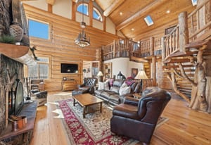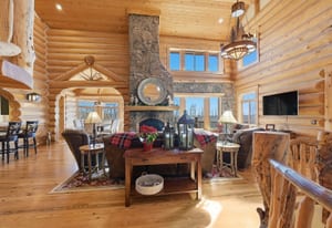 Escape to your own private mountain retreat just outside of Fairplay in the coveted Silverheels Ranch — where refined luxury meets untouched Colorado wilderness across five breathtaking acres. This extraordinary custom log estate spans 6,200 square feet of masterfully crafted living space, seamlessly blending rustic grandeur with elevated comfort. Soaring vaulted ceilings, intricate hand-hewn log beams, and expansive windows fill the home with natural light while framing stunning alpine views. A dramatic floor-to-ceiling moss rock fireplace anchors the great room, creating an inviting space perfect for cozy mountain evenings.