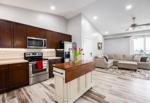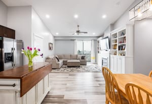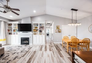 Enjoy the peace and comfort of top level living. With comfortable 9-foot ceilings and flooded in natural light, this spacious two bedroom and two full bathroom condo is the ideal place to call home. The layout features a comfortable master suite with a walk-in closet. The open kitchen offers generous counter space, storage, durable and modern LVP flooring, and flows seamlessly into the living room highlighted by the beautiful built-in bookshelves and a cozy fireplace. Step outside to the covered deck and enjoy the pleasant views. The community includes a pool and playgrounds. Close to shopping and dining with quick freeway access.