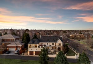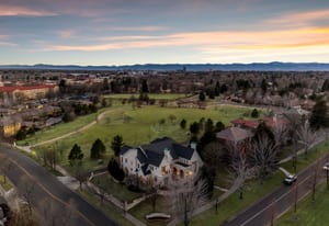 A statement in scale and design, this custom-built estate rises with architectural presence on a prominent corner lot in one of Lowry’s most coveted enclaves. Set along the distinguished stretch of 6th Avenue Parkway, where true estates rarely trade - the home enjoys a scarce position backing to open space, delivering unobstructed sunset and mountain views few in the neighborhood can claim. Built with quality and craftsmanship seldom found today, this residence offers long-term versatility. A covered front porch welcomes you into a grand foyer with sweeping staircase, soaring ceilings, and dramatic two-story windows. Arched French-pane windows flood interior with sunlight, while custom millwork creates a timeless aesthetic. The East wing of the main level features a sunlit east-facing office with fireplace, luxurious powder bath, and oversized receiving area with full wet bar with refrigeration and outdoor patio access. The West wing of the main level is anchored by a formal living room, flexible piano or sitting room, and formal dining space supported by a well-appointed butler’s pantry. The chef’s kitchen offers an eat-in island, integrated appliances, walk-in pantry, warming drawer, and six-burner range with custom hood and pot filler. Off the four-car garage, a mudroom with built-ins connects to a well-appointed laundry room with utility sink. Upstairs, four ensuite bedrooms with walk-in closets plus a large recreation room with fireplace and wraparound deck support multigenerational living. The primary suite features a fireplace, sitting area, wet bar, covered balcony, and spa bath with jetted tub, walk-in shower, dual vanities, and custom closet with laundry. The lower level is prepped for future finish with office, bath/bar plumbing, and bedroom framing. Fully fenced yard and integrated security complete this rare offering backing to open space just moments from Denver’s core.