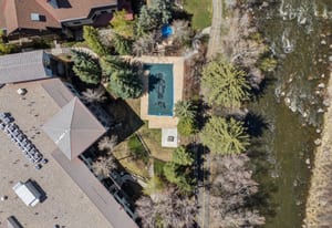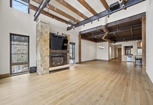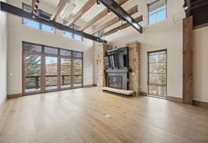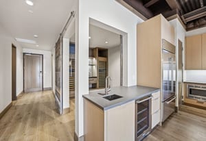 Experience elevated mountain living in this premier 3-bedroom + flex den penthouse, originally envisioned as the developer's residence. Designed to impress, the home features dramatic extra-high ceilings and an expansive single-level open floor plan that delivers both sophistication and comfort. The enclosed den, accented with elegant sliding barn doors, offers exceptional versatility and is enhanced by a custom, temperature-controlled, sub-zero, 150+ bottle wine closets, creating an ideal space for entertaining or unwinding. Designer finishes and curated décor are showcased throughout, anchored by soaring 20' ceilings and a striking tile fireplace that serves as the home's architectural focal point. Custom white oak flooring by Arrigoni Hardwoods, central air conditioning, and premium appliances - including a Wolf range, GE Monogram refrigerator, and dedicated beverage refrigerator; elevate the culinary experience for discerning chefs and hosts alike. The private primary suite is a serene retreat, complete with a spa-inspired bath featuring a soaking tub, oversized walk-in shower, dual vanities, and a walk-in closet. Designed for entertaining, the open-concept living, dining, and kitchen spaces flow seamlessly for both intimate gatherings and larger celebrations. Floor-to-ceiling windows and doors create a true indoor-outdoor connection, opening to a deck overlooking the pool and the tranquil Eagle River. This residence is among the largest in this exclusive, boutique, LEED-certified building of just 16 residences. Amenities include a welcoming, light-filled lobby, outdoor pool and hot tub, ski lockers, fitness rooms, owner storage, and two assigned underground parking spaces. Ideally located with direct access to walking and biking paths and just steps from the Beaver Creek shuttle.