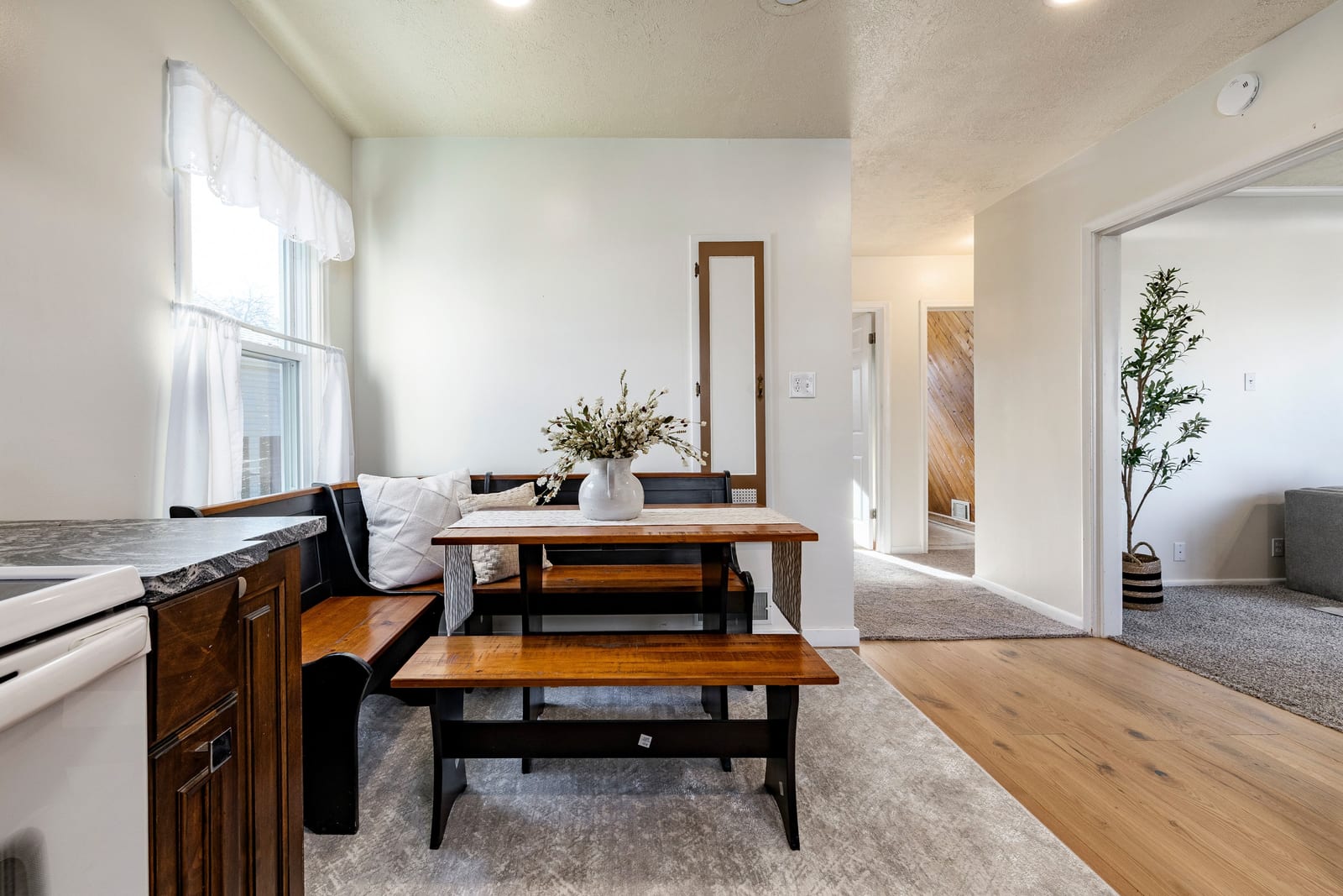 Tucked away on a quiet South Ogden street, this charming bungalow feels comfortable and easy from the moment you arrive. It strikes a great balance between character and the updates that make daily life simple. Natural light fills the living room through newer vinyl windows, highlighting fresh paint, new carpet, and engineered hardwood floors. Original details like the millwork and coved ceilings add warmth and personality throughout the space. The spacious kitchen was remodeled in 2024 with new cabinetry and granite countertops and works well for both everyday living and hosting. Many of the major items have already been updated, including a newer roof, furnace, and air conditioner, offering peace...