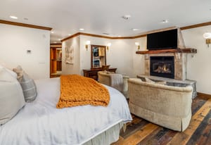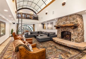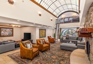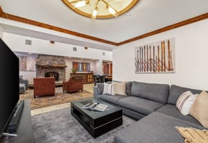 12 Vail Road, Residence 8 is a rare Vail Village 4-bedroom plus loft penthouse offering an exceptional combination of space, privacy, and immediate access to everything the village has to offer. Located directly across from the Four Seasons, within the boutique Vail Gateway Plaza, this fully furnished four-bedroom plus loft residence is ideally suited for buyers seeking walk everywhere convenience, effortless ownership, and the ability to comfortably host guests without sacrificing privacy. Accessed via a private elevator shared with only one adjoining residence, the home connects directly to two heated, deeded garage parking spaces positioned immediately adjacent to the elevator for seamless arrival and departure in the heart of the village. Additional guest parking within the building further enhances day-to-day convenience. Multiple locked owner closets keep personal items securely in place, making lock-and-leave ownership especially easy. The residence offers an unusually generous floor plan for Vail Village, allowing it to live more like a private home than a typical condominium. The expansive great room features soaring ceilings, an open-concept layout, a stone gas fireplace, a generous dining area, and a kitchen with an island and a breakfast bar, ideal for entertaining or everyday relaxed living. A separate media and lounge room adds flexibility, while a striking loft with custom steel railing and ladder creates a unique hangout or overflow sleeping space. The home comfortably sleeps ten and has been recently refreshed. The design reflects an established European-influenced aesthetic with an emphasis on quality construction and natural materials. Whether enjoyed as is or thoughtfully updated over time, the enduring value lies in the scale, layout, privacy, parking, and irreplaceable Vail Village location, elements that are increasingly difficult to replicate.