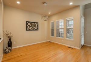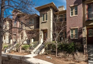 From the moment you enter this elegant Inverness brownstone, a sense of calm sophistication sets the tone, where space, light, and thoughtful design come together to create an exceptional living experience. The main level unfolds in a beautifully open and airy flow, enhanced by rich hardwood floors and abundant natural light. The living room feels both grand and inviting, centered around a cozy gas fireplace with a custom built-in entertainment center, making it an ideal setting for everyday living or relaxed evenings at home. The dining area transitions seamlessly into the expansive eat-in kitchen, a true showpiece designed for connection and entertaining, featuring striking granite slab countertops, a decorative tile backsplash, stainless steel appliances with a gas range, abundant cabinetry and a generous center island that anchors the space with style and function. Upstairs, the home continues to impress with a versatile loft that lends itself perfectly to a home office or reading nook, a conveniently located laundry room, and two spacious bedrooms. The primary suite is a serene retreat, highlighted by a large walk-in closet and a spa-like five-piece bathroom with a freestanding soaking tub and a walk-in shower, creating a daily escape of comfort and luxury. An oversized two-car garage provides generous storage and practicality, while the setting remains quiet and refined despite its proximity to vibrant amenities. Walkable, central, and surrounded by parks, coffee shops, restaurants, and shopping, and quick access to I-25 and the light rail. This bright condo offers the perfect balance of peaceful living and effortless urban convenience, creating a connected lifestyle where comfort, accessibility, and ease come together seamlessly.