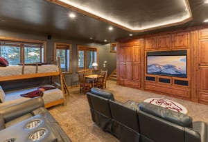 This custom four bedroom home is nearly 5,000 square feet The home features high-end finishes throughout, with an open floor plan and great views from nearly every room. There are two well appointed Primary Suites on the upper level, two lower level bedrooms plus a theater room that has bunks in it and could easily be converted to a game room. Two car garage, an over-sized hot tub on the beautiful back outdoor patio and the property is adjacent to open space for great privacy.