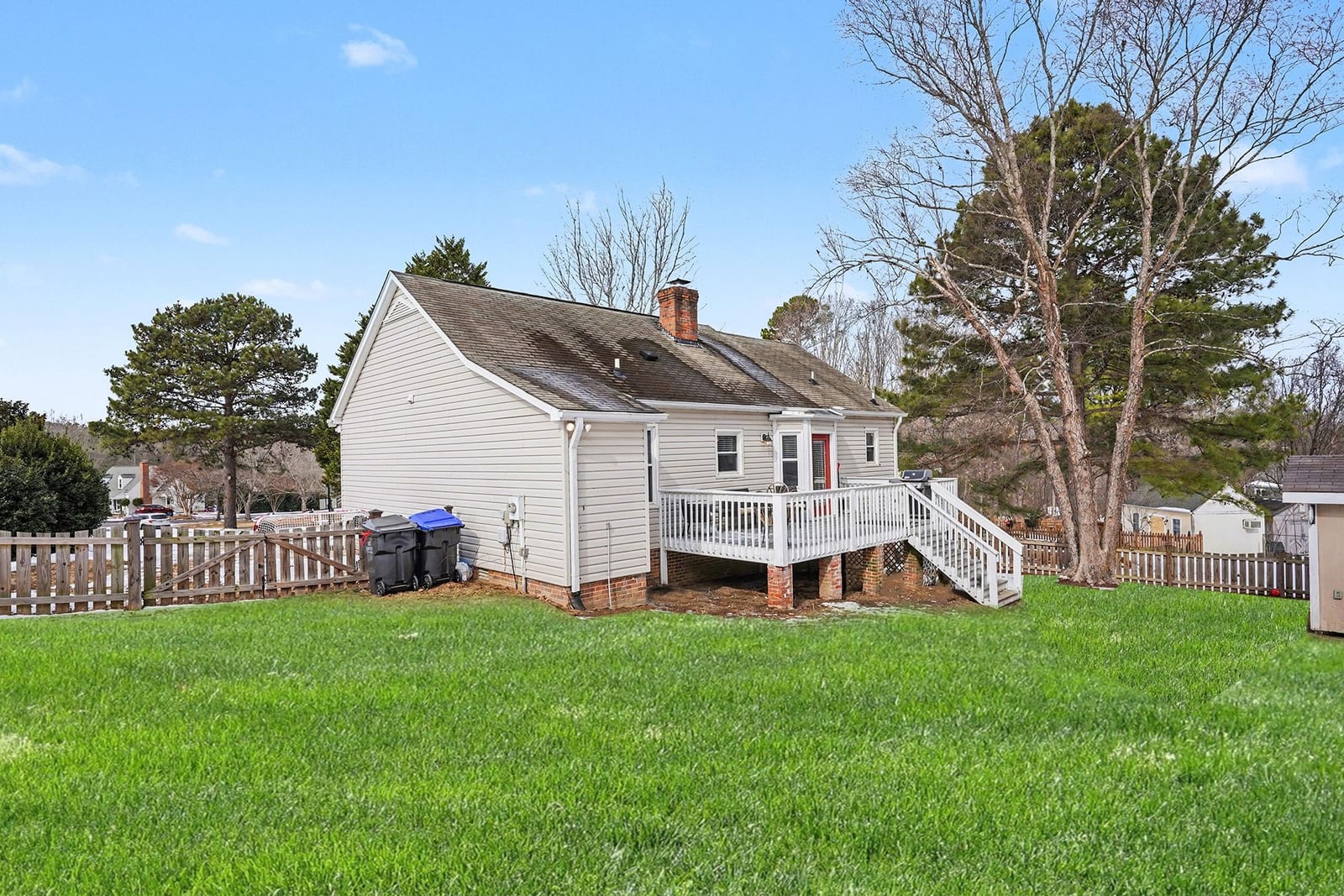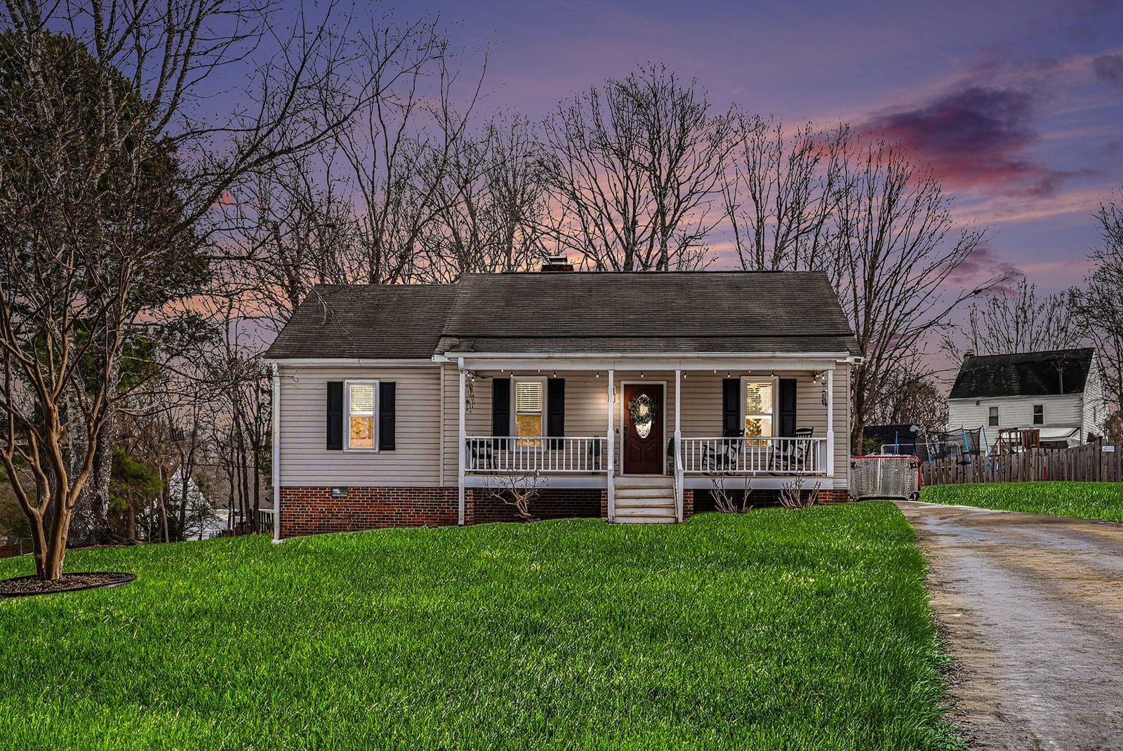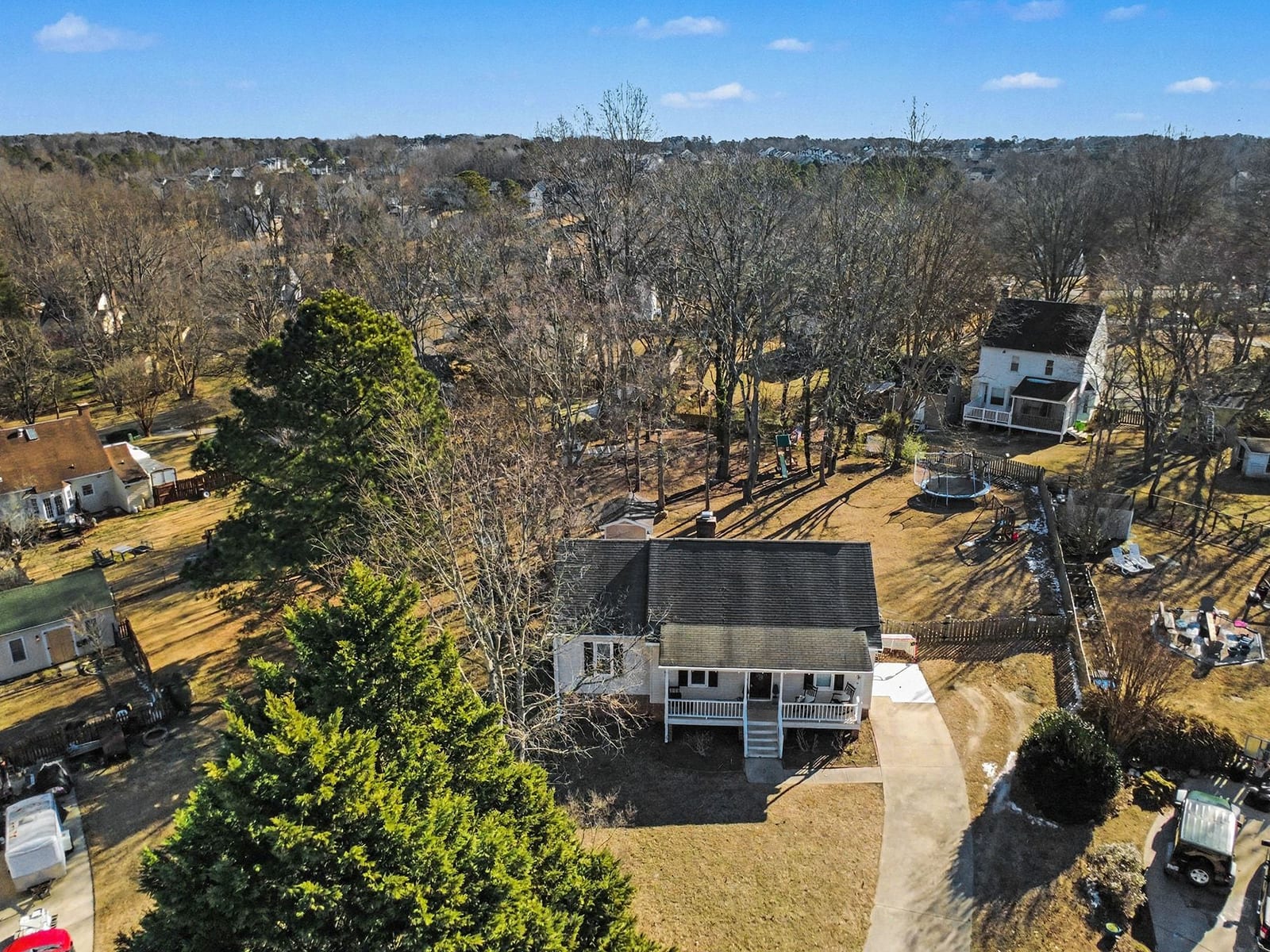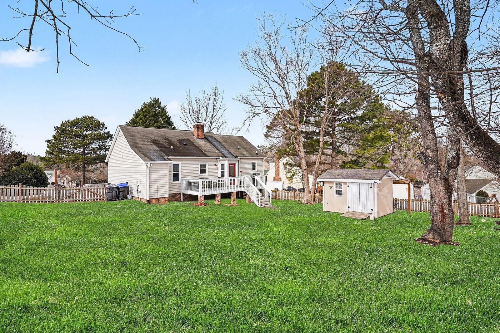 Rare combination of single-level living and a spacious, versatile lot this home is ideal for anyone seeking space and comfort. Situated on a cul-de-sac in the desirable Jones Dairy Farm community this 3 bedroom 2 bath home sits on .56 acres offering the kind of outdoor flexibility that's increasingly hard to find with an added bonus of no HOA dues. A large front porch welcomes you in, while the rear deck extends the living space outdoors for grilling, relaxing or enjoying the backyard views. The interior features hardwood floors throughout the living area with a wooded fireplace, open kitchen/dining area with stainless steel appliances and a large primary suite. Custom closet shelving, hardwood flooring in all bedrooms, ceiling fans and updated baths. The expansive lot is fenced in back and provides room for exterior storage, shed/workshop, play equipment, a chicken coup or whatever vision you have in mind!