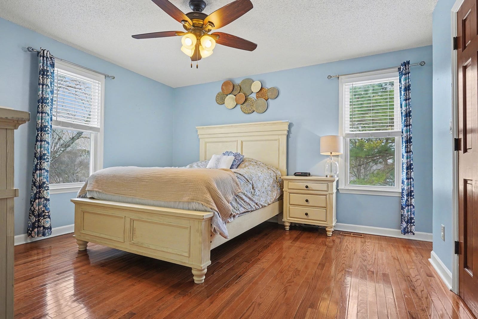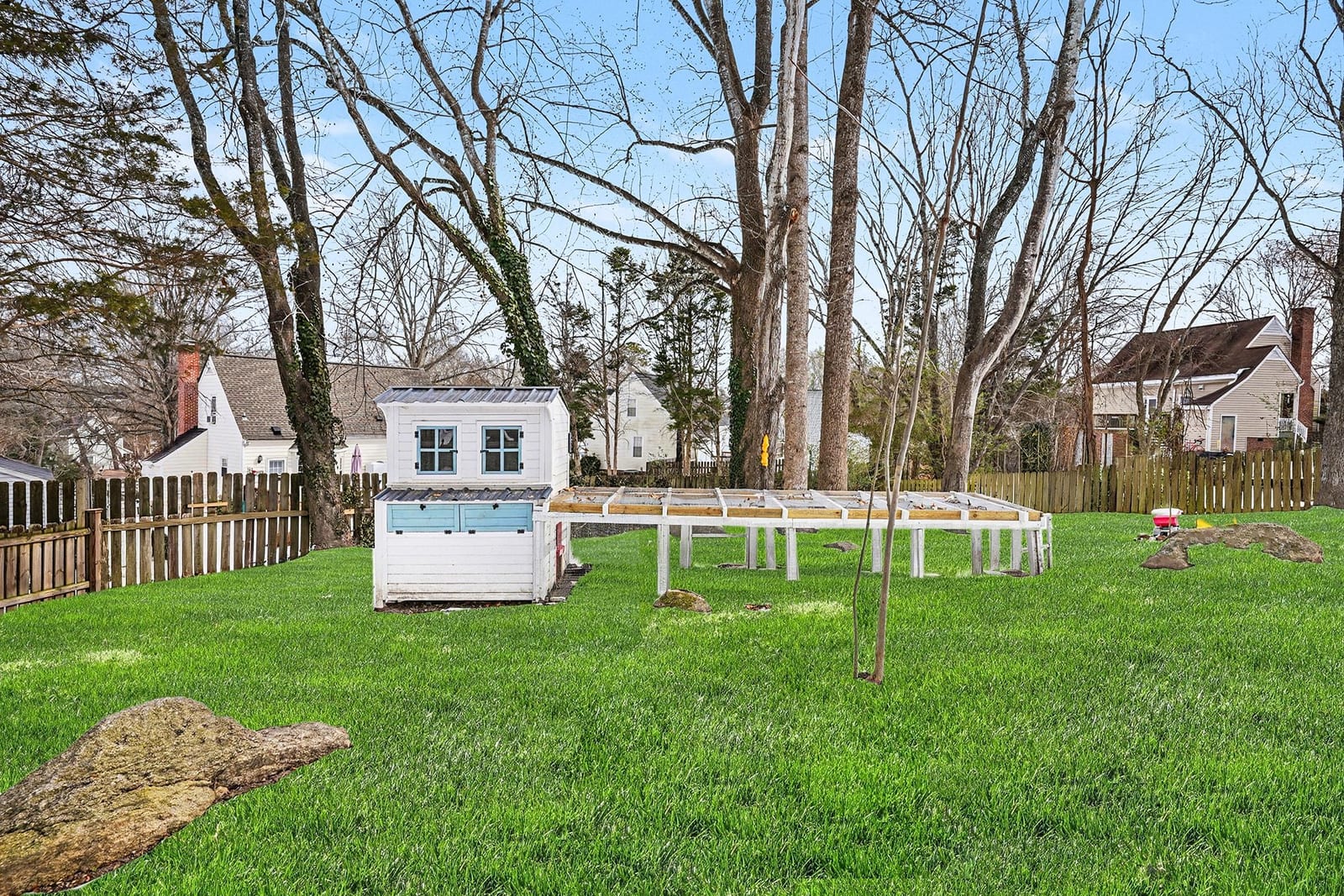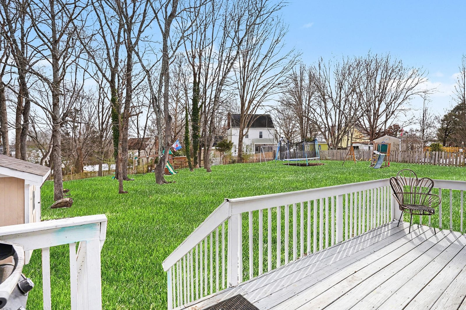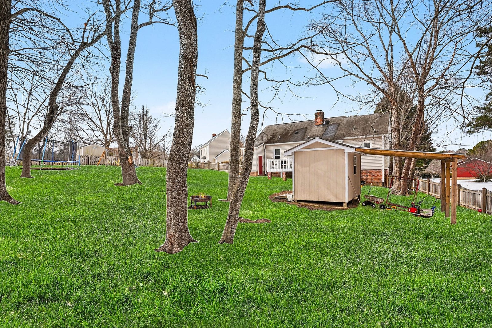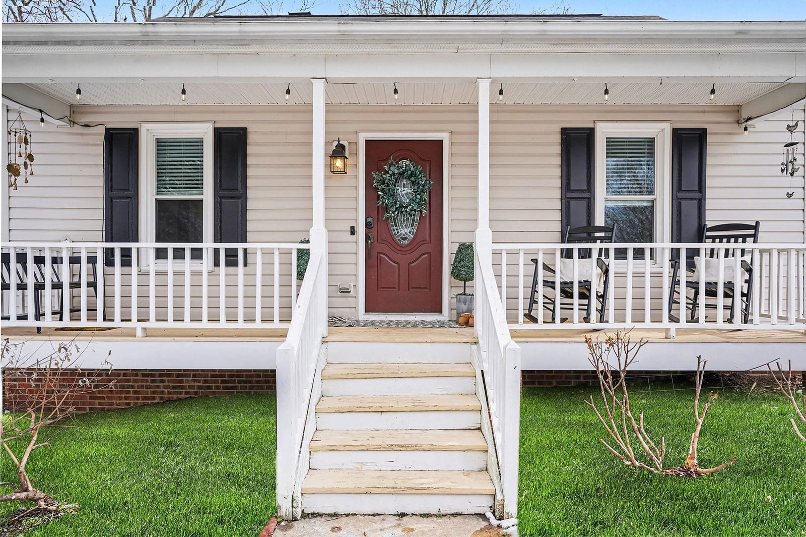 Rare combination of single-level living and a spacious, versatile lot this home is ideal for anyone seeking space and comfort. Situated on a cul-de-sac in the desirable Jones Dairy Farm community this 3 bedroom 2 bath home sits on .56 acres offering the kind of outdoor flexibility that's increasingly hard to find with an added bonus of no HOA dues. A large front porch welcomes you in, while the rear deck extends the living space outdoors for grilling, relaxing or enjoying the backyard views. The interior features hardwood floors throughout the living area with a wooded fireplace, open kitchen/dining area with stainless steel appliances and a large primary suite. Custom closet shelving, hardwood flooring in all bedrooms, ceiling fans and updated baths. The expansive lot is fenced in back and provides room for exterior storage, shed/workshop, play equipment, a chicken coup or whatever vision you have in mind!
