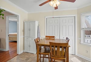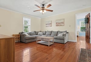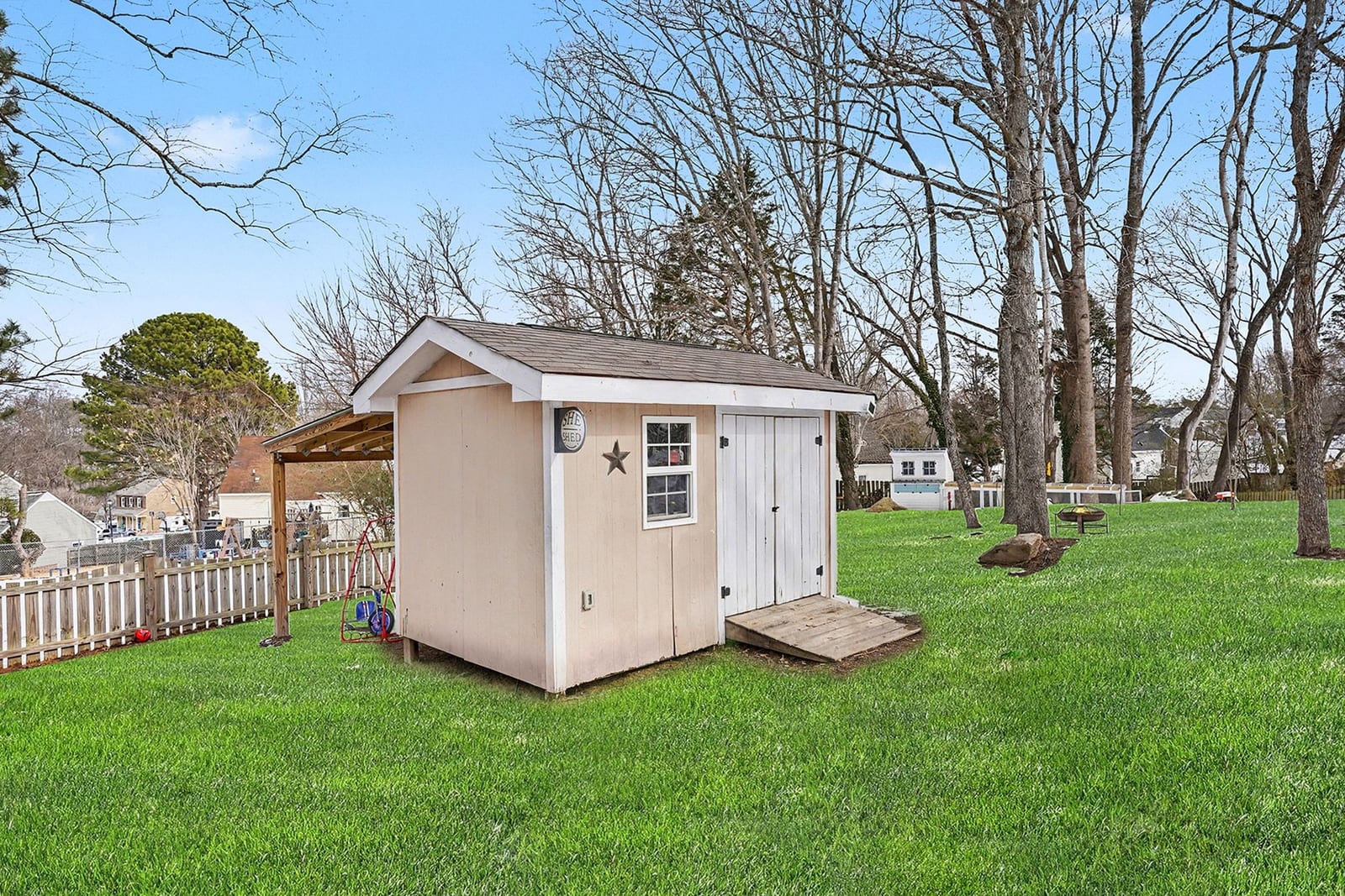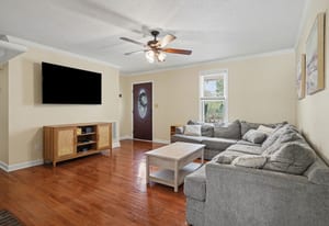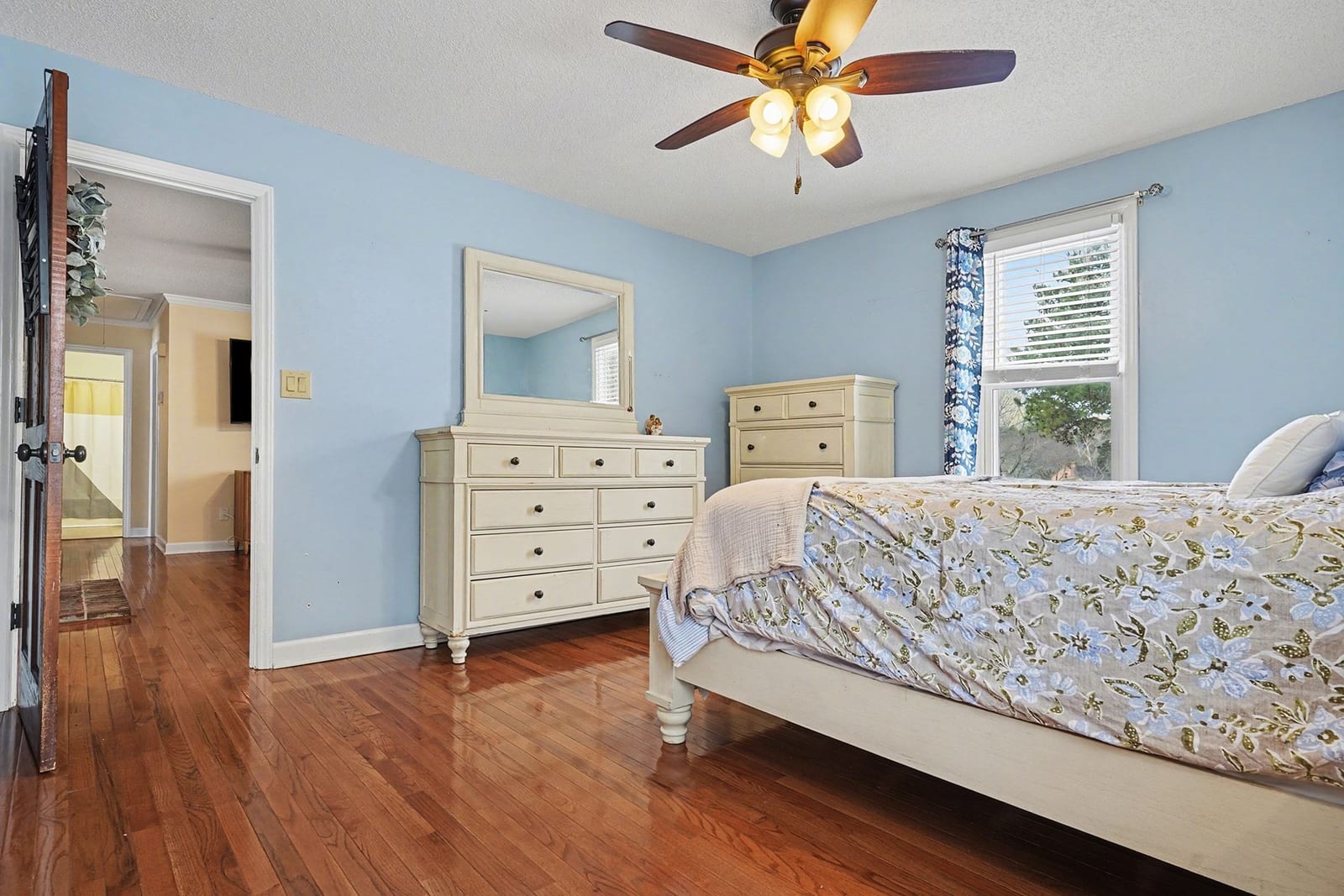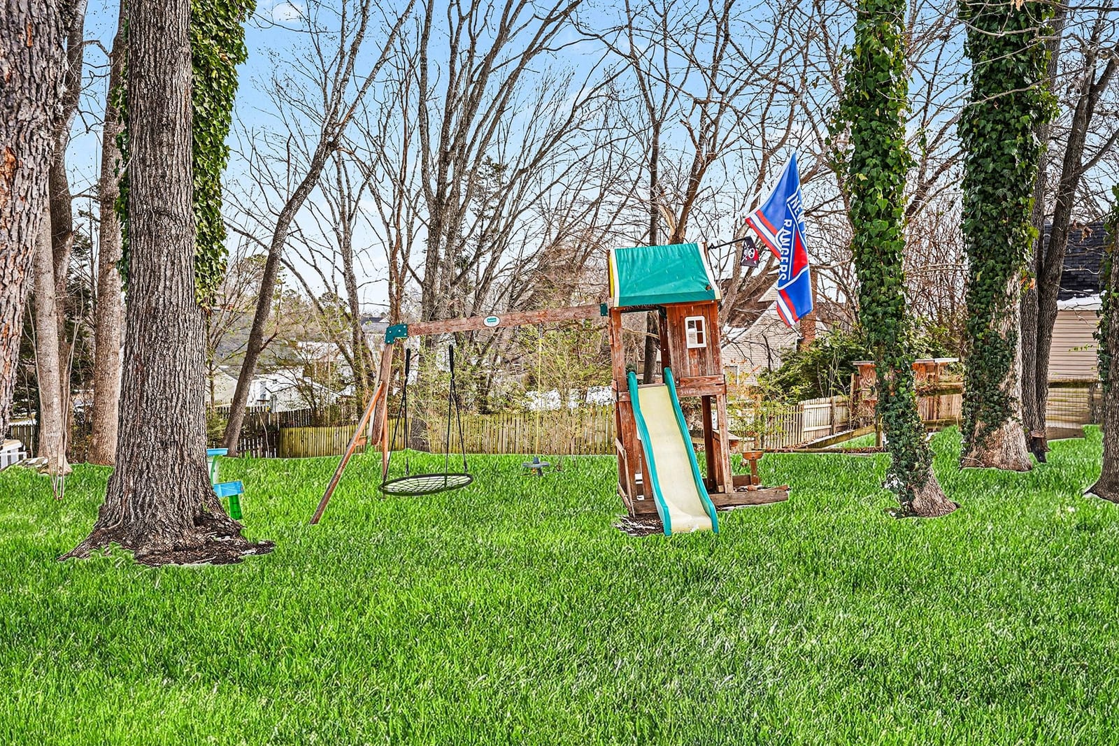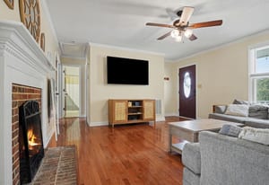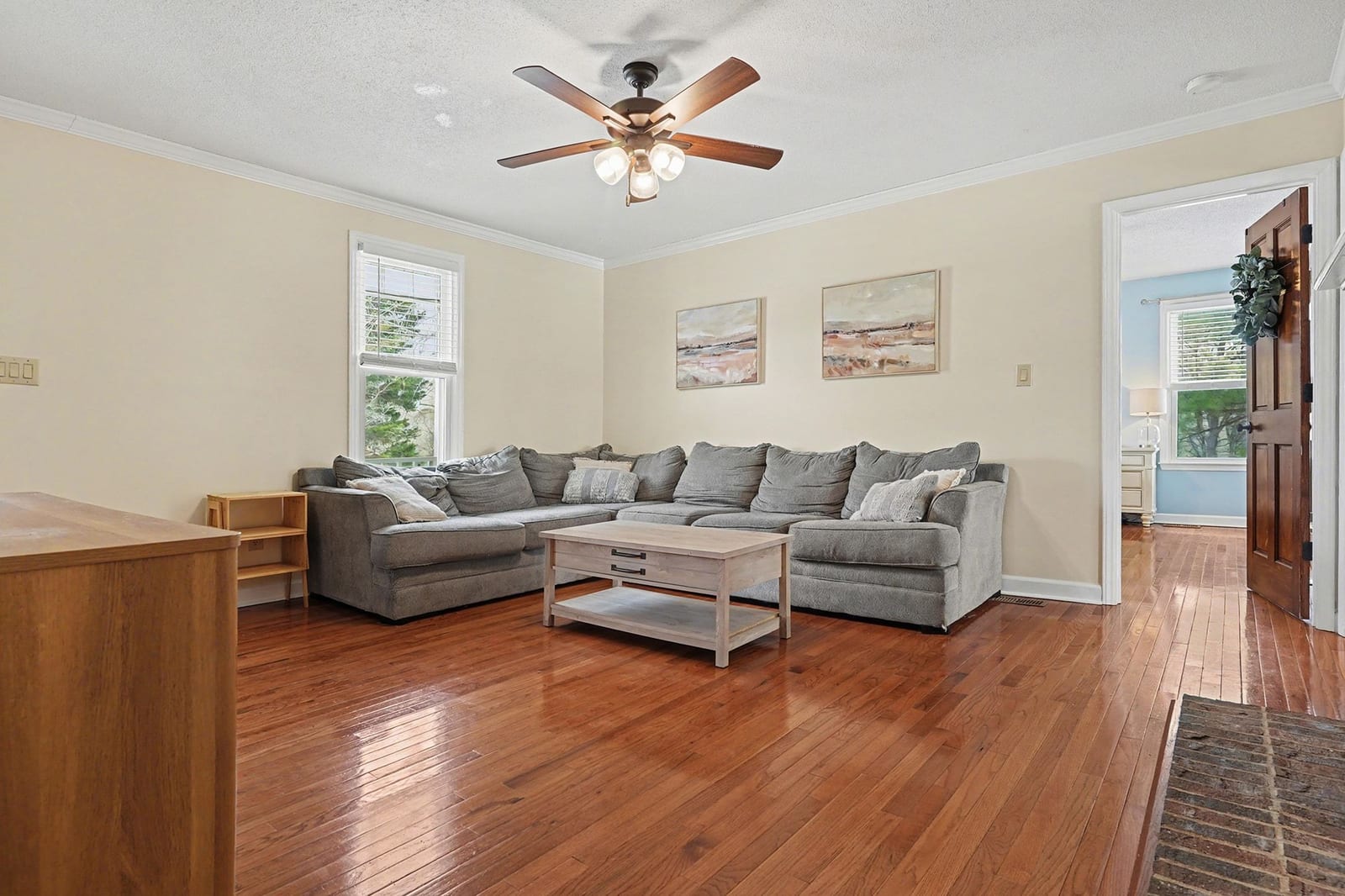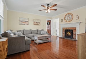 Rare combination of single-level living and a spacious, versatile lot this home is ideal for anyone seeking space and comfort. Situated on a cul-de-sac in the desirable Jones Dairy Farm community this 3 bedroom 2 bath home sits on .56 acres offering the kind of outdoor flexibility that's increasingly hard to find with an added bonus of no HOA dues. A large front porch welcomes you in, while the rear deck extends the living space outdoors for grilling, relaxing or enjoying the backyard views. The interior features hardwood floors throughout the living area with a wooded fireplace, open kitchen/dining area with stainless steel appliances and a large primary suite. Custom closet shelving, hardwood flooring in all bedrooms, ceiling fans and updated baths. The expansive lot is fenced in back and provides room for exterior storage, shed/workshop, play equipment, a chicken coup or whatever vision you have in mind!