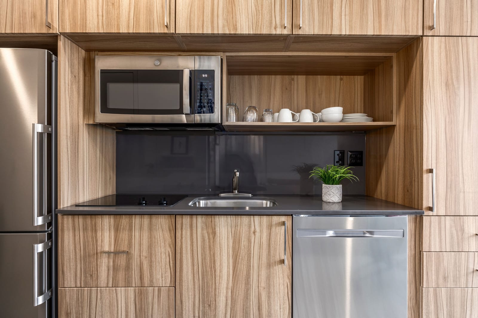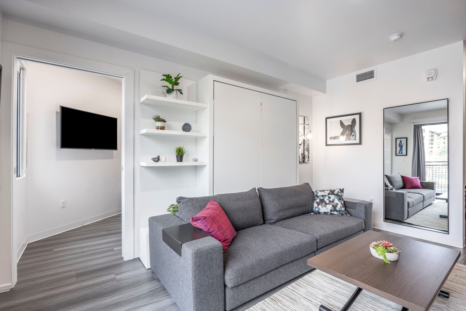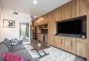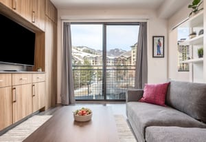 Modern 1-bedroom residence at Canyon Haus (formerly Yotelpad) featuring innovative European-style design with multi-functional furniture that maximizes space and utility. Kitchenette includes extensive built-in cabinetry, quartz countertops, 2-burner cooktop, microwave, and full-size refrigerator. Enjoy mountain views and abundant natural light. Canyon Haus offers exceptional amenities including front desk service, private workspaces, game/arcade room, fitness center, sauna, lounge, coffee center, pool and hot tub, ski and boot valet (winter), laundry, underground heated parking, and dedicated owner storage. Ideally located in the heart of Canyons Village, steps to restaurants, shops, Red...