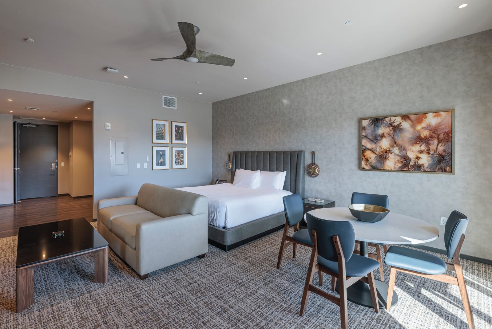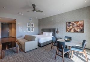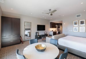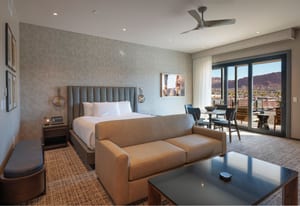 This top-floor unit has stunning Red Rock views to the East. This studio offers the perfect blend of comfort and scenery. Featuring a spacious king bed, inviting living area, and kitchen, the space is thoughtfully designed for both relaxation and functionality. Large windows showcase breathtaking Red Rock views while filling the unit with natural light, and tasteful finishes create a warm, welcoming atmosphere. Fully approved for nightly rentals, this property is ideal as a personal getaway as well as to be able to have it in the Rental Program. Enjoy convenient access to nearby dining, shopping, and outdoor recreation. A fully turnkey property in an unbeatable setting.